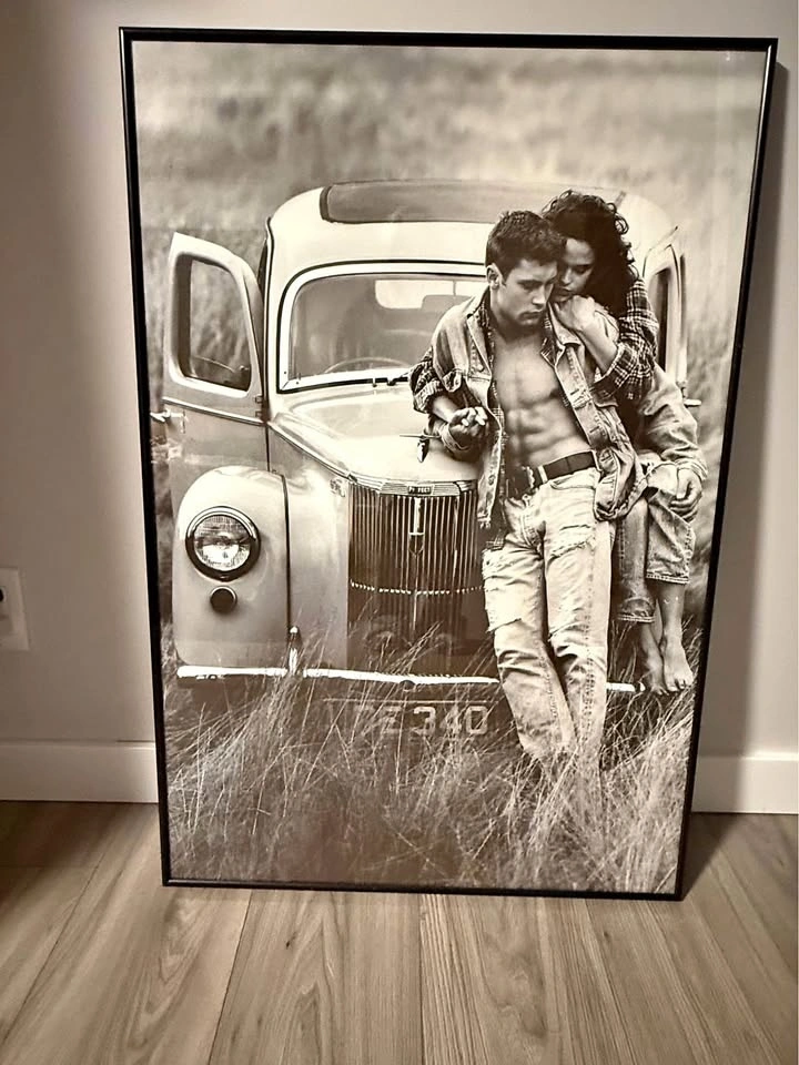 Beautiful black and white picture of young couple. Professionally framed. In excellent condition! Black metal frame. Measures 2’ x 34 1/2”. Non-smoking, non-pet home. Pick up is in South Surrey