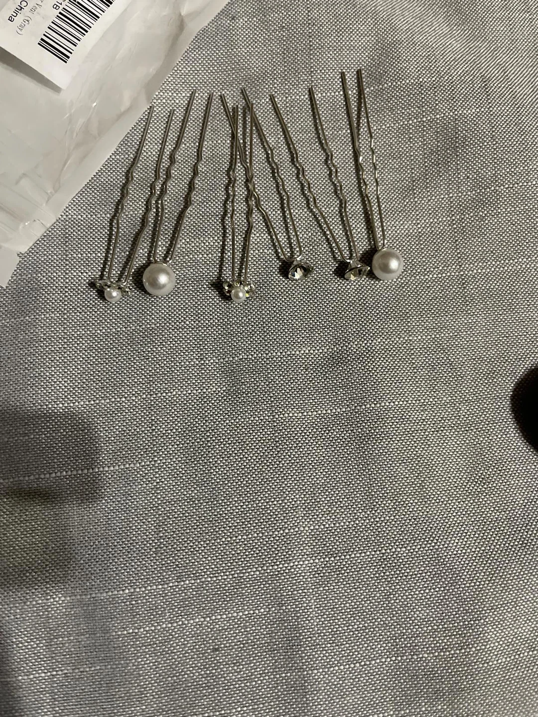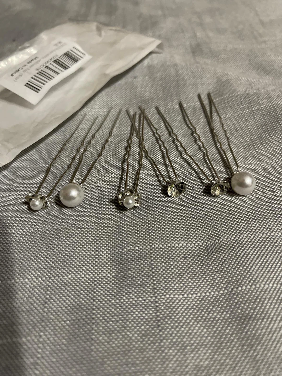 Selling a set of six hair pins, perfect for adding a touch of elegance to any hairstyle! These pins feature a mix of faux pearls and rhinestones, adding a subtle sparkle. Great for weddings, parties, or just to dress up your everyday look. They're in excellent condition and ready for a new home!