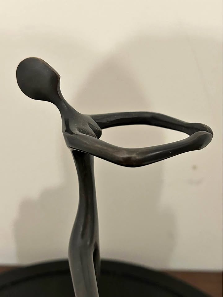 Solid and well-made piece with a refined bronze-tone finish. A stylish addition for lovers of modern sculpture and minimalist decor.
