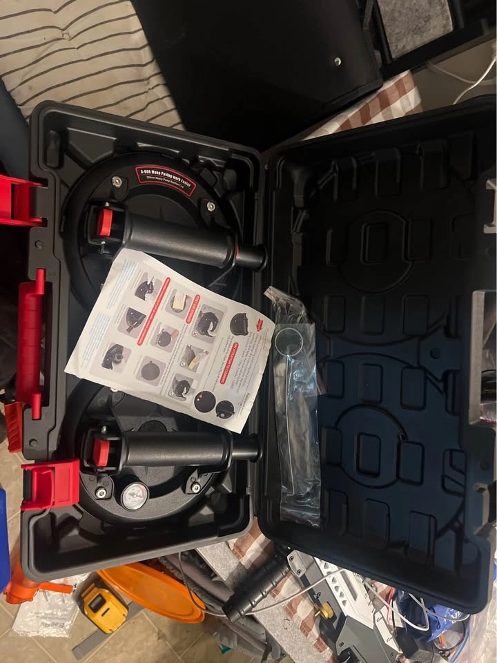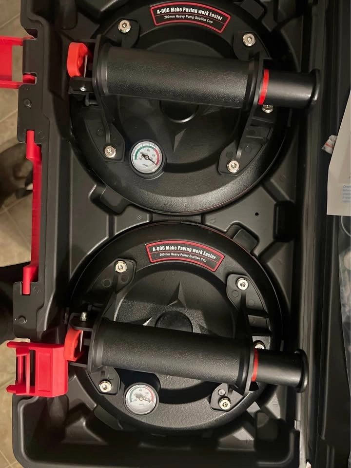 Selling a set of two heavy-duty pump suction cups, each 200mm in size. These are designed to make the job easier. Whether it’s paving, tiles, windows, or any flat surface the is work easier and come in a case for convenient storage and transport. Each suction cup holds up to 165 lbs. Brand new, never used. Pick up only.