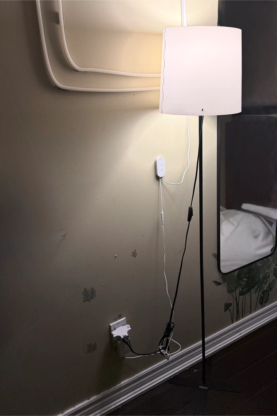 Selling an Ikea NYMÅNE floor lamp! It features a white shade and a sleek black base. Great for adding a touch of modern style to any room