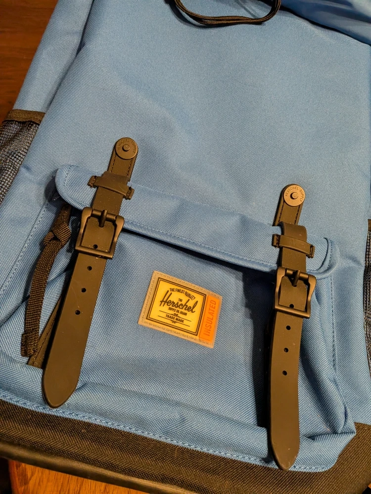 The backpack features the classic Herschel design with an insulated interior, perfect for keeping your items cool/warm. Side bottle pockets. Drawstring top closure