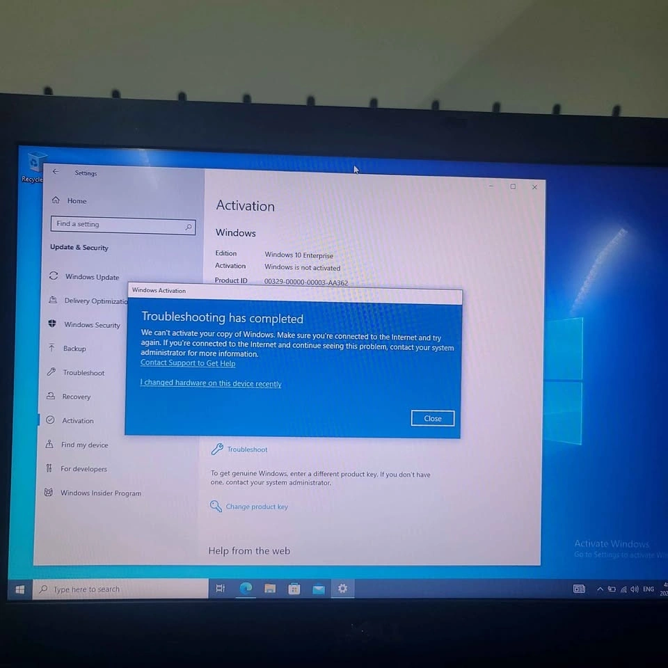 Operating System: Windows 10 Enterprise (Not Activated - Activation Troubleshoot failed, as shown in pictures). You will need a product key to activate Windows fully.