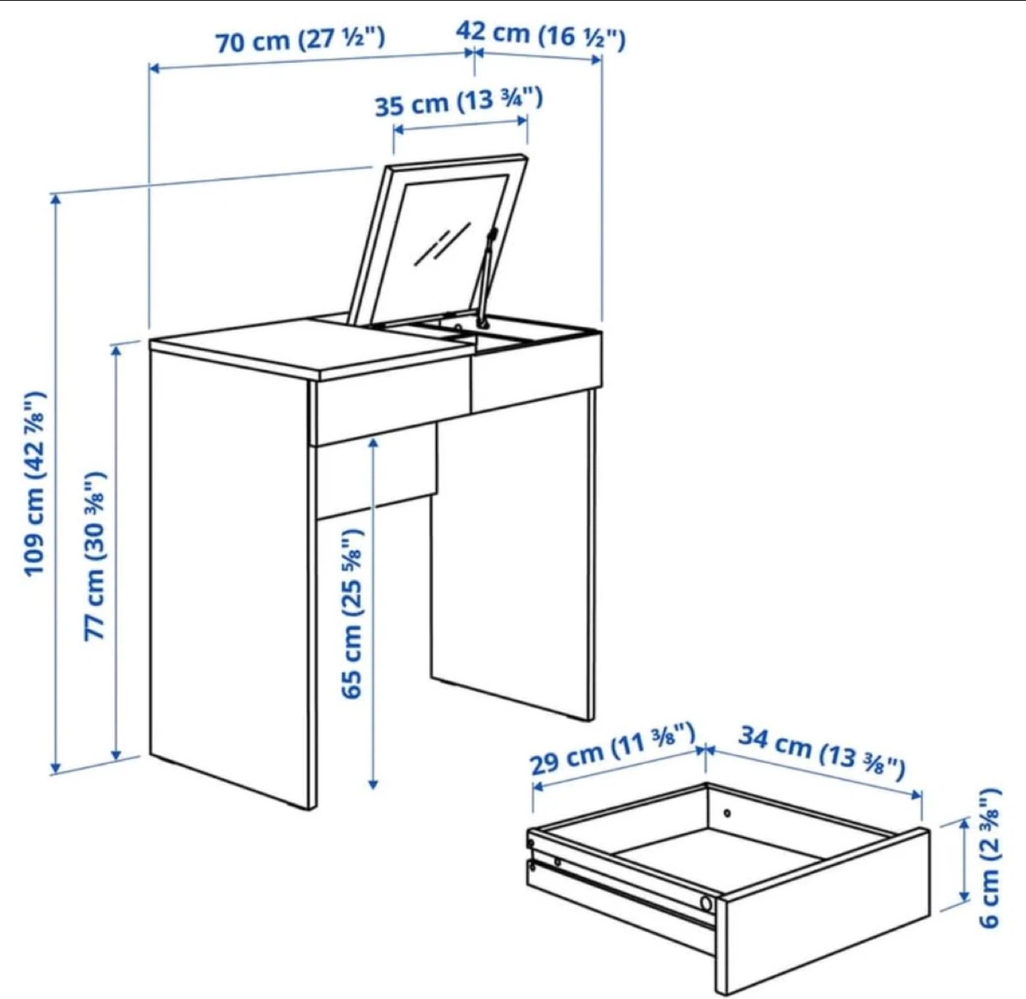 β’ Drawer size: 29 Γ 34 Γ 6 cm