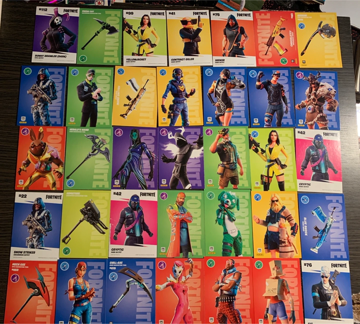 Selling a bundle of Fortnite trading cards! Great for collectors or fans of the game. Each card features different characters, skins, and weapons from the Fortnite universe. Perfect for trading or completing your collection