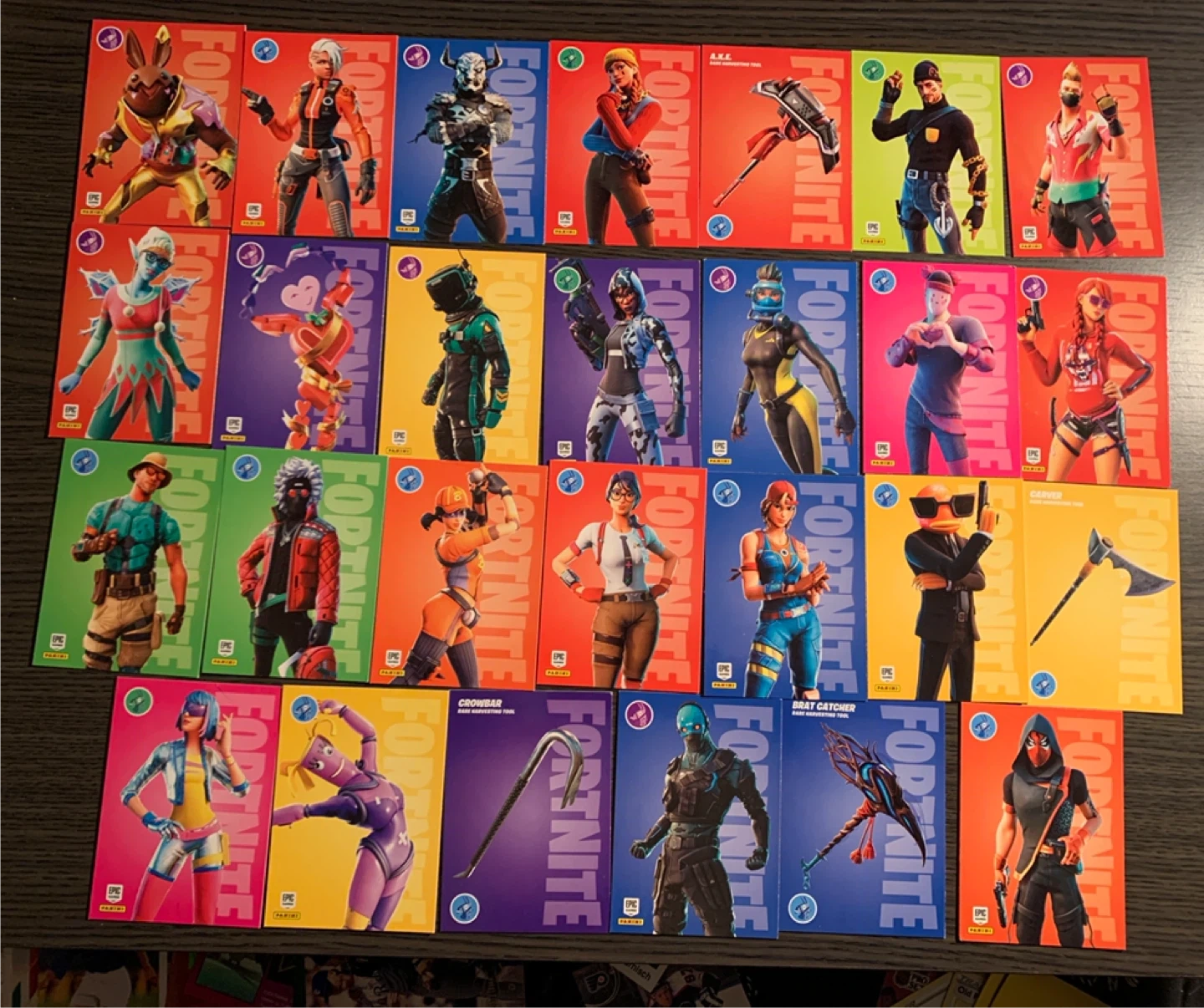 Selling a collection of Fortnite trading cards! Great for fans of the game or collectors. Each card features different characters and skins from Fortnite. Perfect for trading with friends or completing your collection