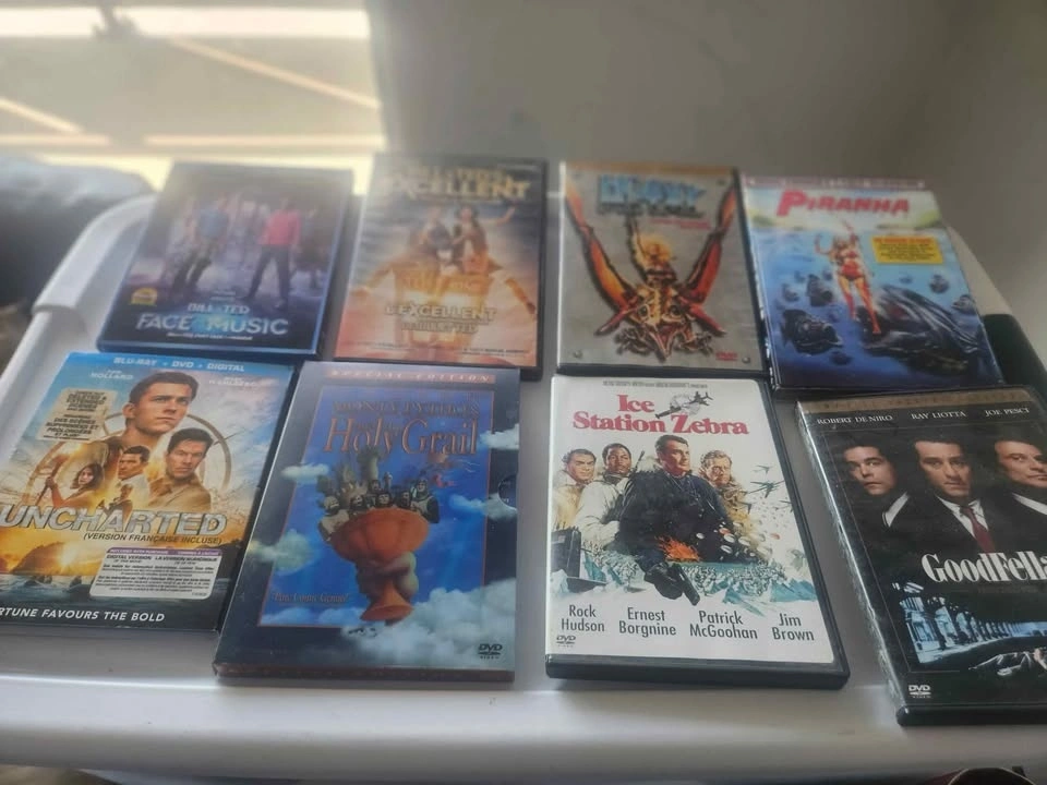 34 movies for sale. Great for the cottage or for movie night!