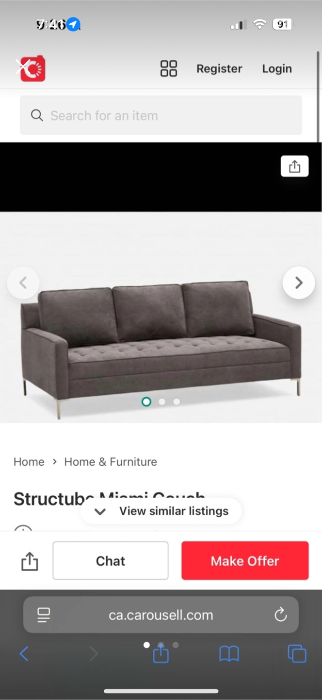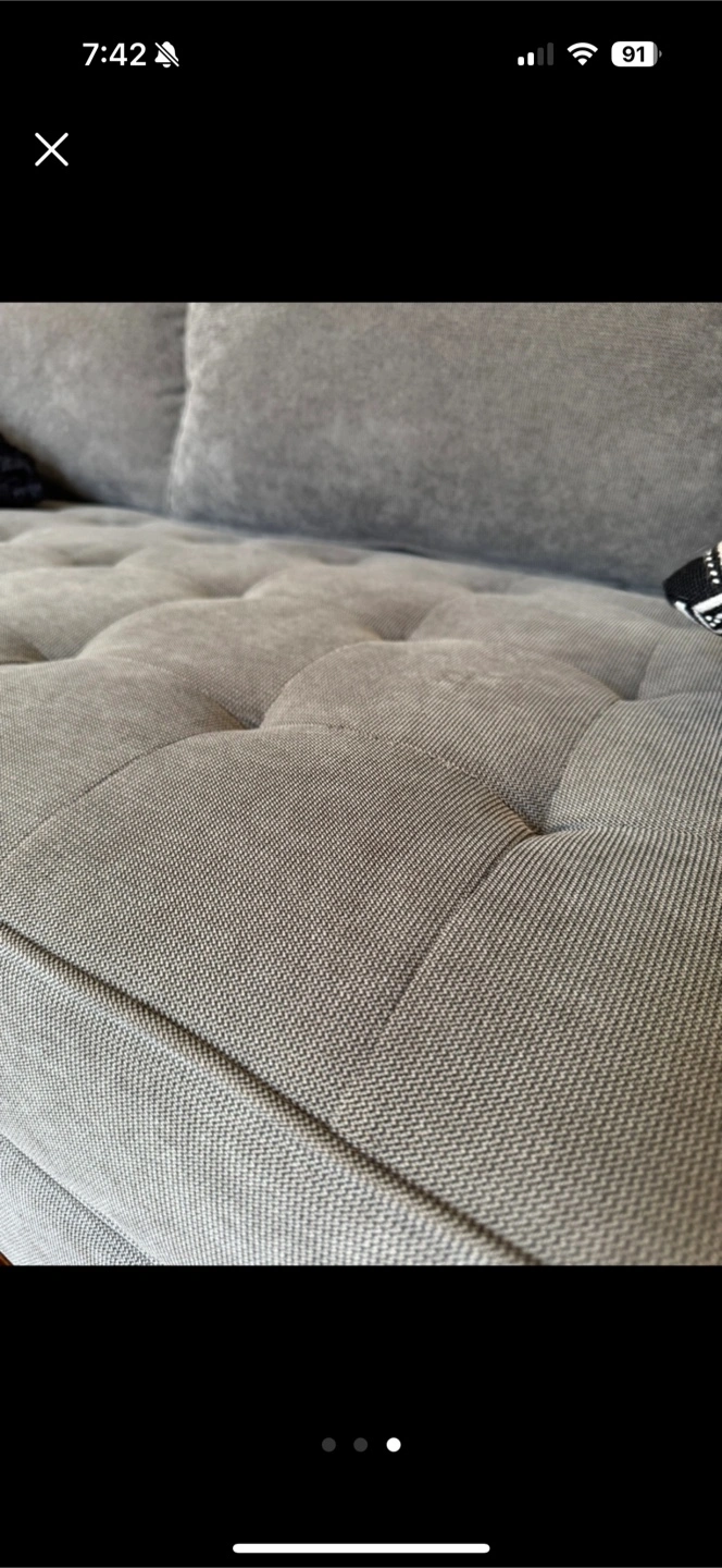 Selling a Structube Miami couch! It's in great condition and would be perfect for any living room. The couch has a nice grey colour and a button-tufted design.