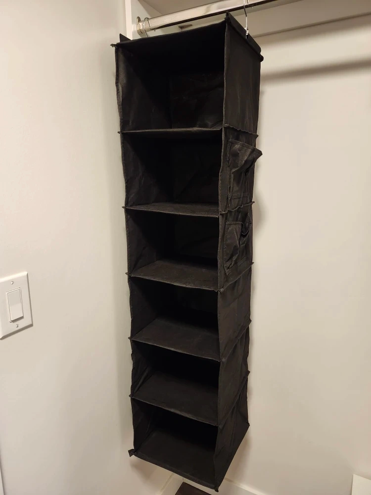 Declutter your closet with this handy hanging organizer! It's perfect for storing clothes, shoes, or accessories, and helps maximize space in your wardrobe. It's in NEW condition (never used). I have 2. $10 each or both for $15.
