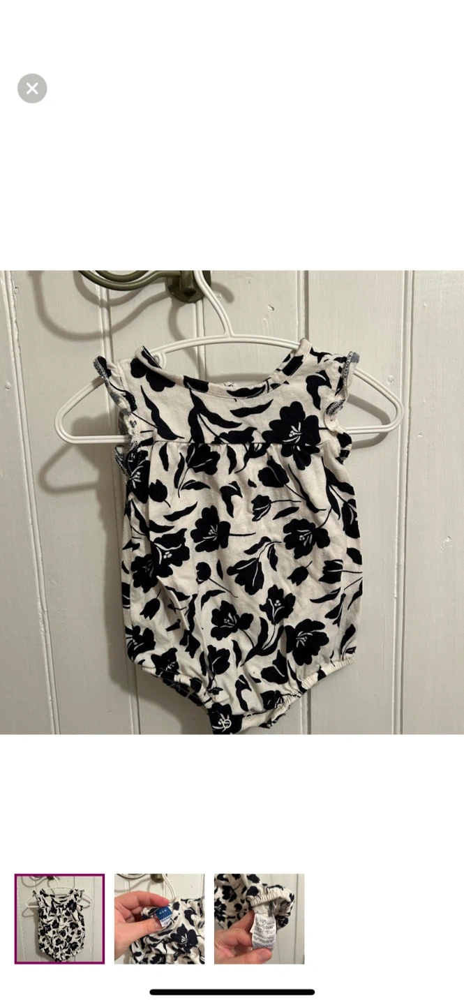 Old navy brand. Bubble romper. Black & white floral. Size 0/3m. Like new condition