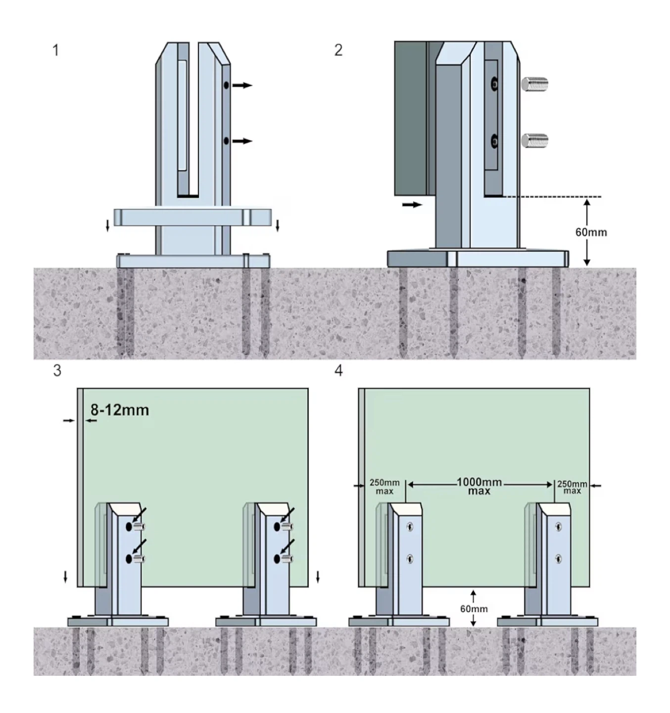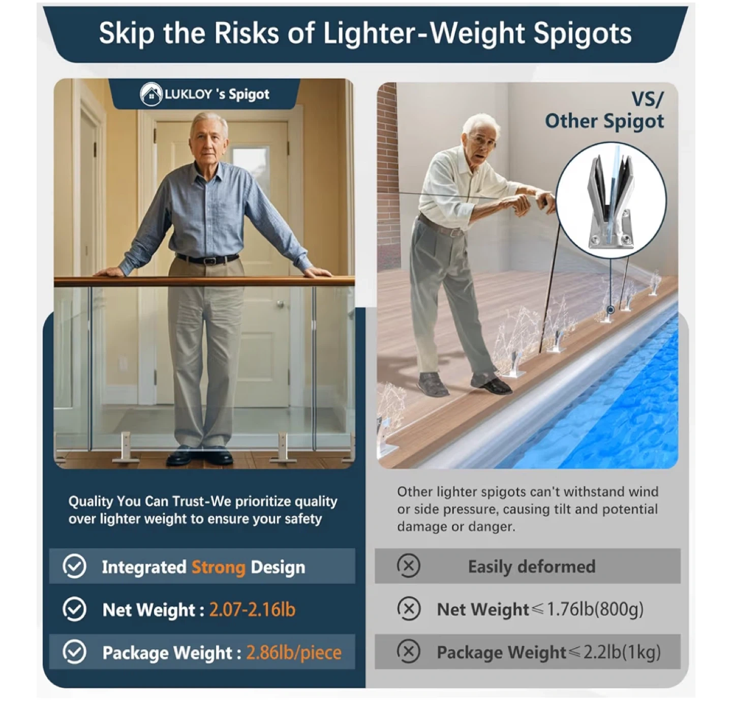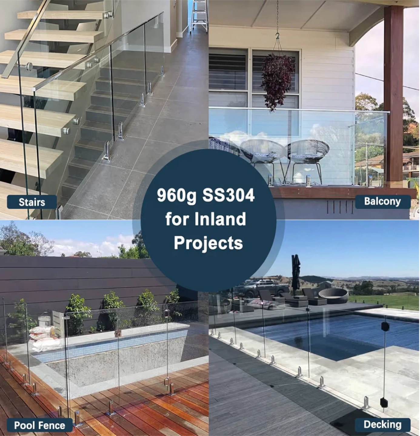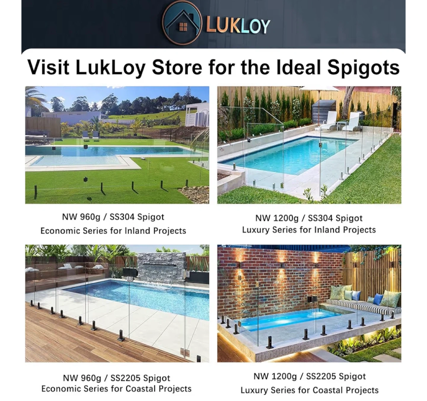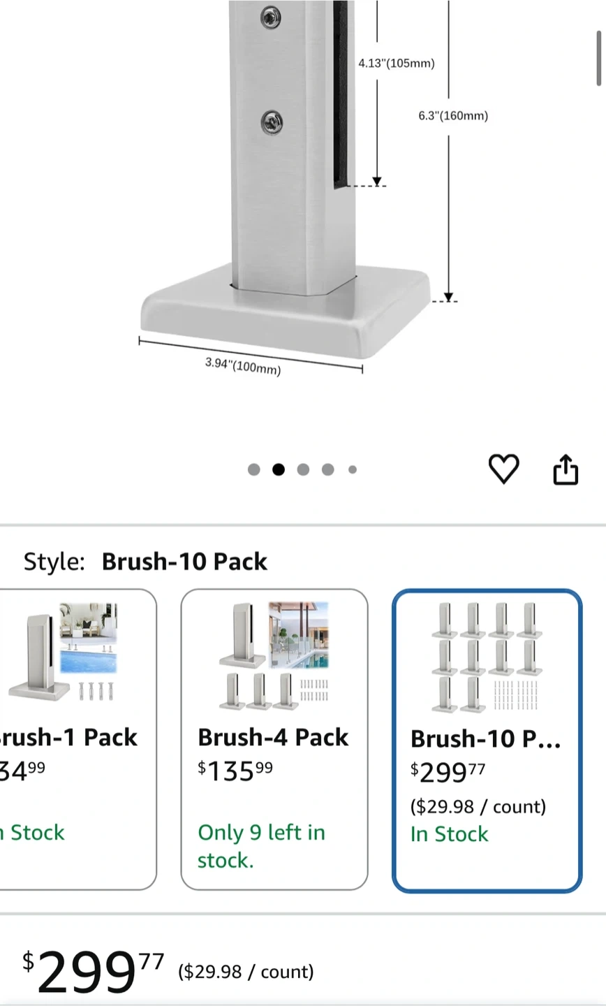 Selling a set of LukLoy 304 stainless steel square glass spigots. These are suitable for 10mm - 12.7mm (3/8"-1/2") glass. Each piece weighs between 2.07-2.16lb. They are designed with quality in mind to ensure your safety.its a set of 10 pieces