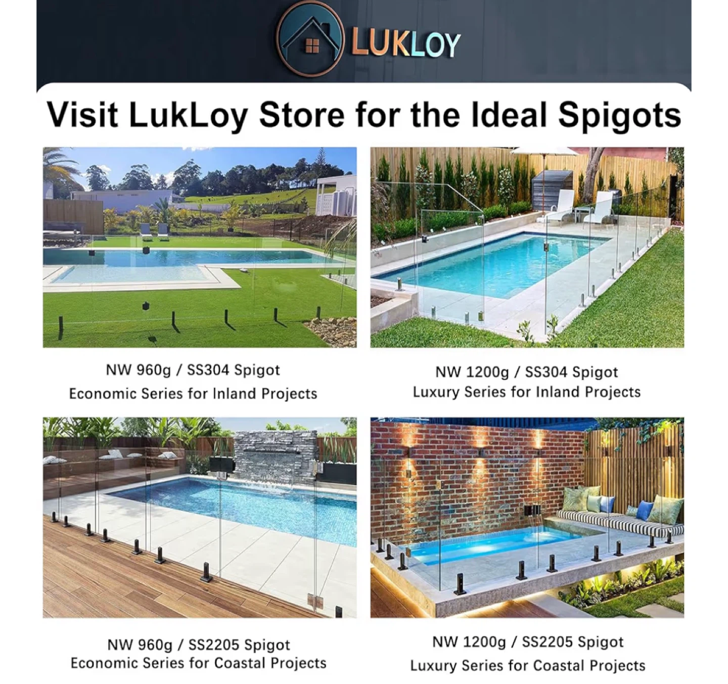 LukLoy 304 Stainless Steel Glass Spigots