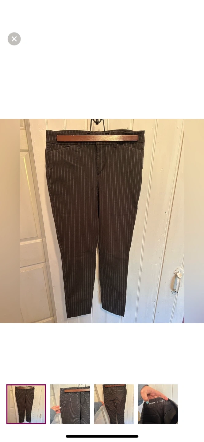 Old navy brand. Skinny leg pixie pant. Black with thin white stripes. Size 4 TALL. Brand new condition, very light wash wear.
