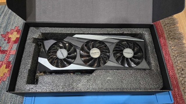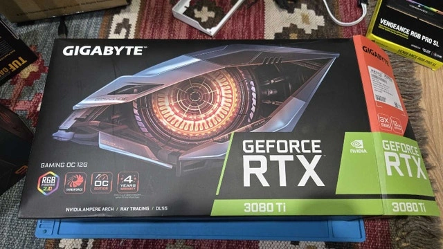 Selling a Gigabyte RTX 3080 Ti, a high-performance graphics card with 12GB of GDDR6X memory for demanding gaming and graphic tasks. This used card is in good condition and has been well-maintained, ready to boost your gaming experience or accelerate your creative projects. Key specifications include: * NVIDIA Ampere Architecture * 12GB GDDR6X Memory * Ray Tracing and DLSS Support * Multiple Display Outputs (HDMI, DisplayPort) I'm asking $750, a fair price considering its capabilities. If you're seeing this ad, the RTX 3080 Ti is still available.
