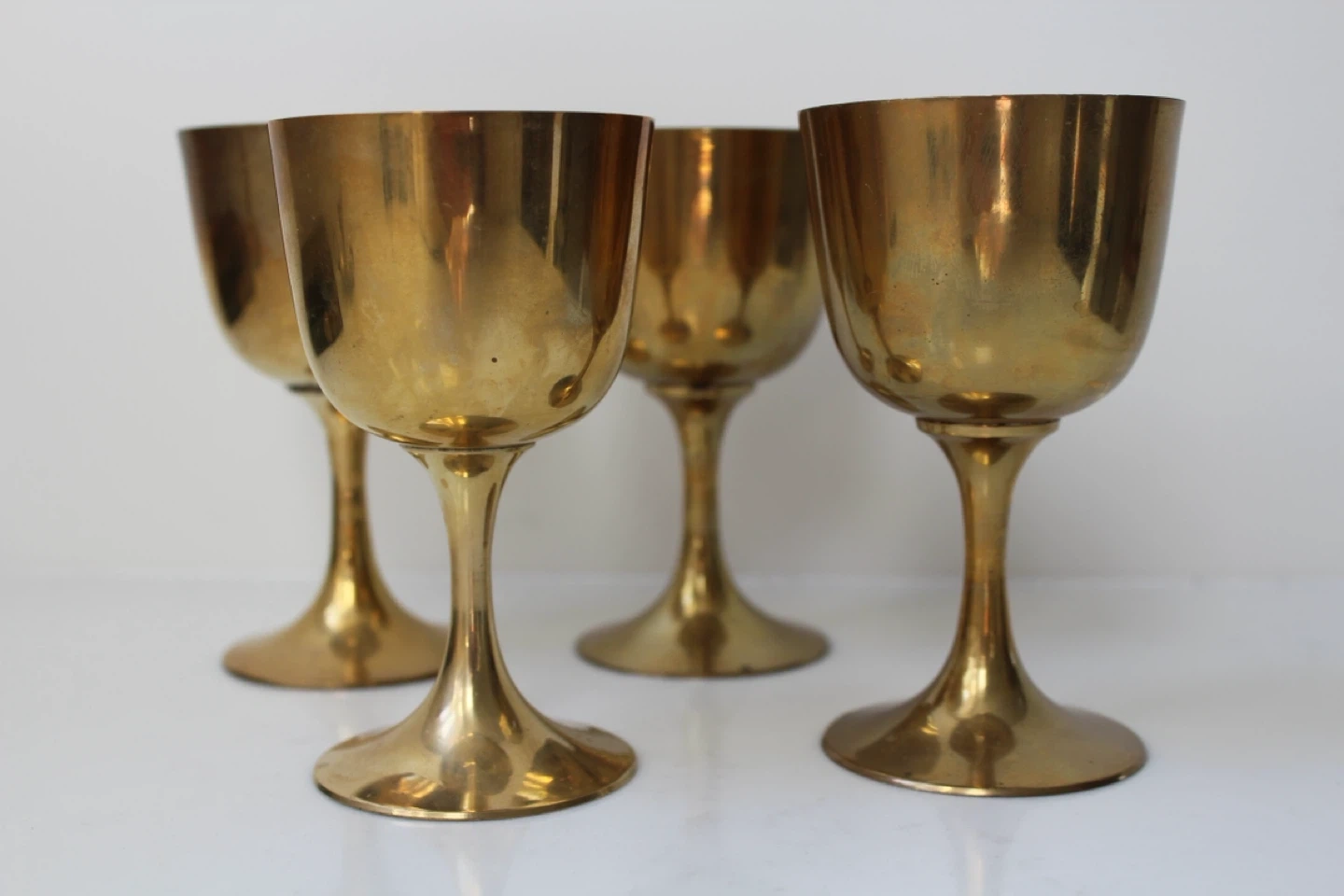 Selling a set of four vintage brass goblets. They're in great condition and would make a lovely addition to any home!