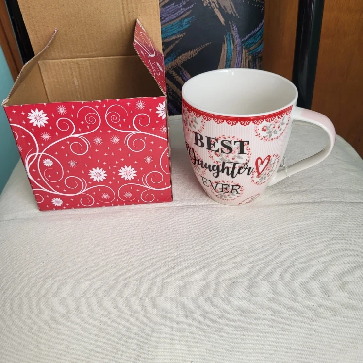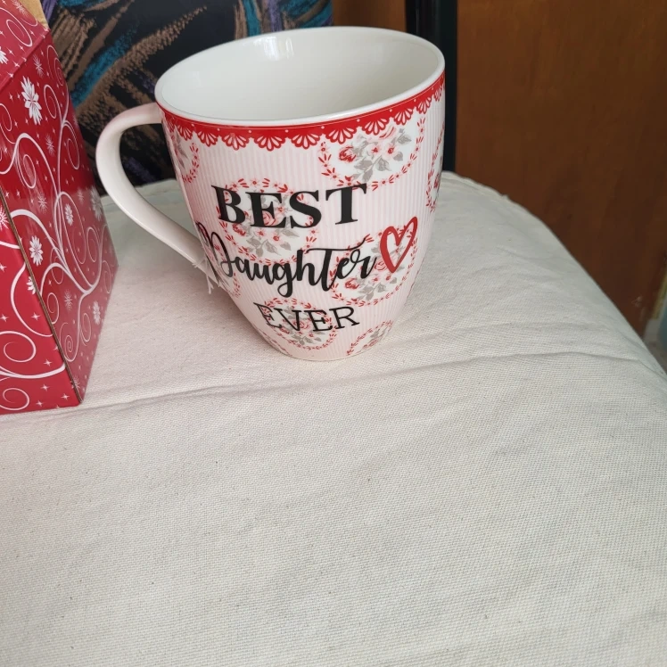 Selling a cute "Best Daughter Ever" mug! It's in great condition and comes with its original box, which has a lovely red and white snowflake design. Perfect for showing your daughter some love!