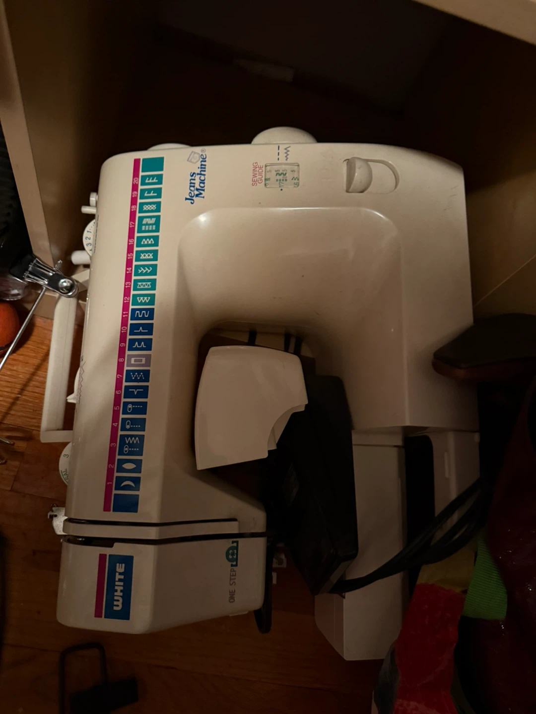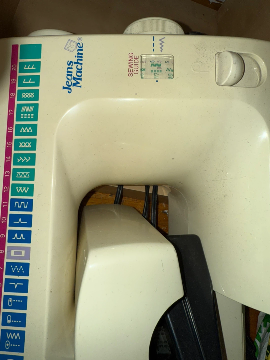 Working uesd might need niddlWhite Jeans Machine sewing machine. It's in good condition and ready for your sewing projects! It features a variety of stitch options and a one-step buttonhole function.