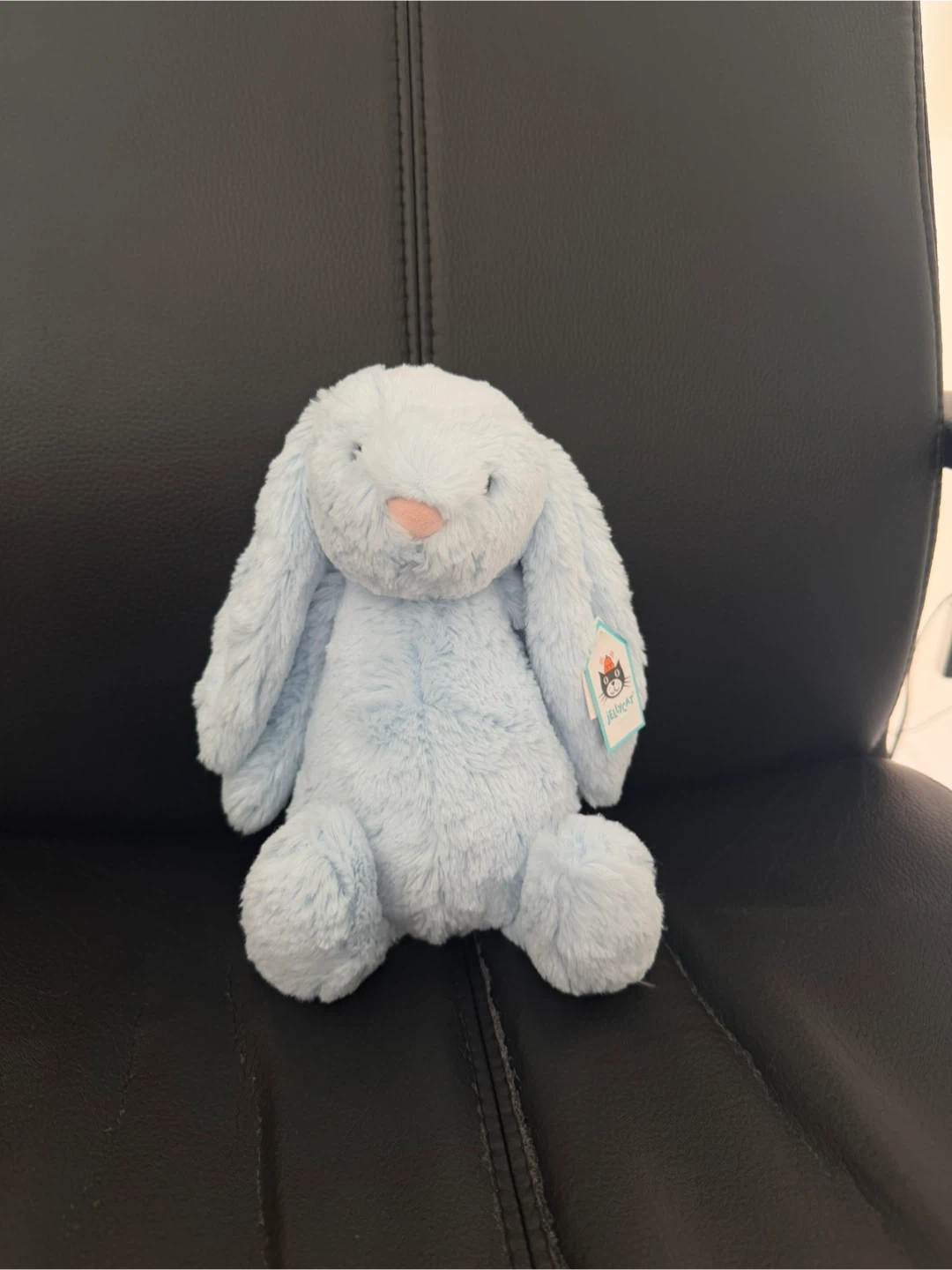 This super cute Jellycat Bashful Bunny Chime is looking for a new home! It's brand new and ready to be loved. The colour is a lovely soft blue, perfect for a baby or child's room. Has a light rattle inside. Measures 9 in tall when sitting upright.