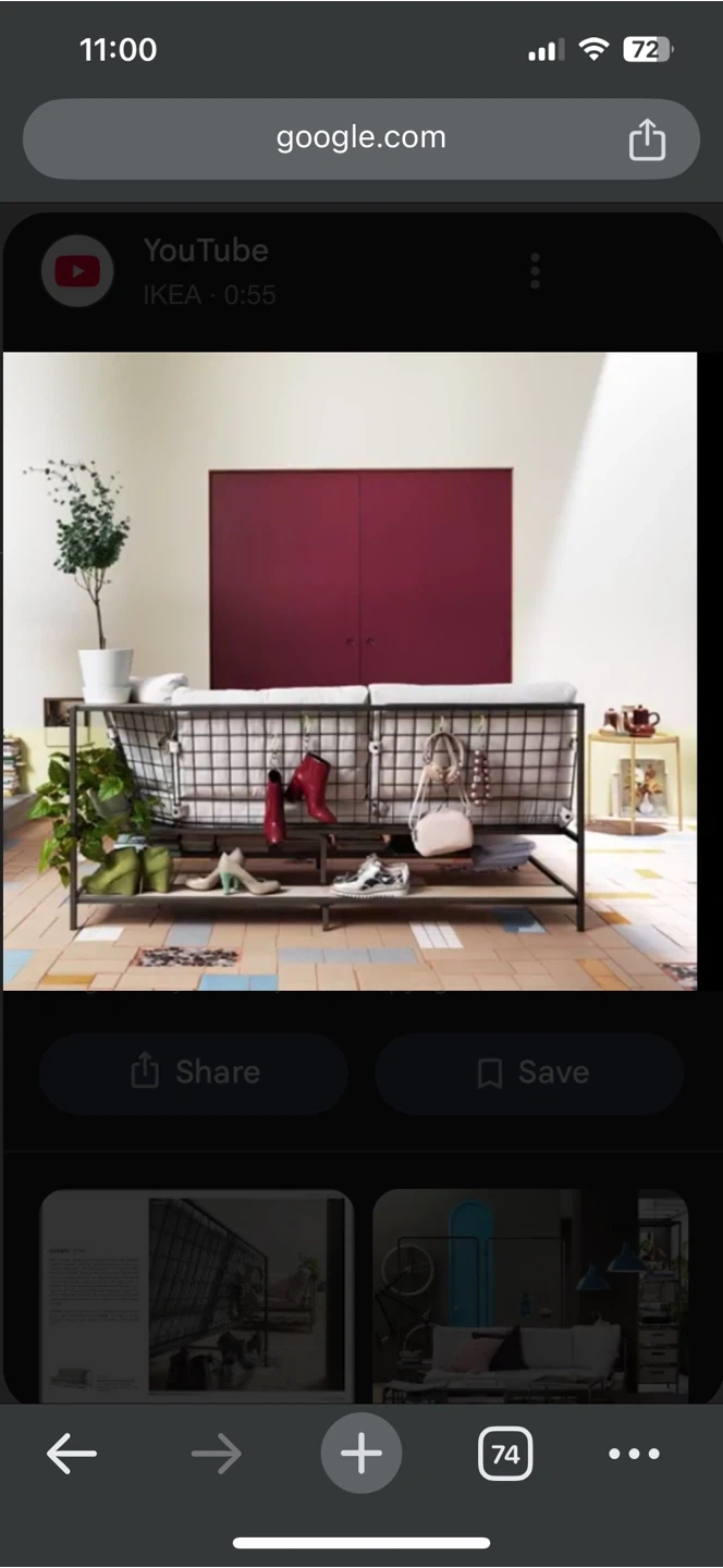 It has built in storage on the bottom, side and back, very stylish and space efficient.
