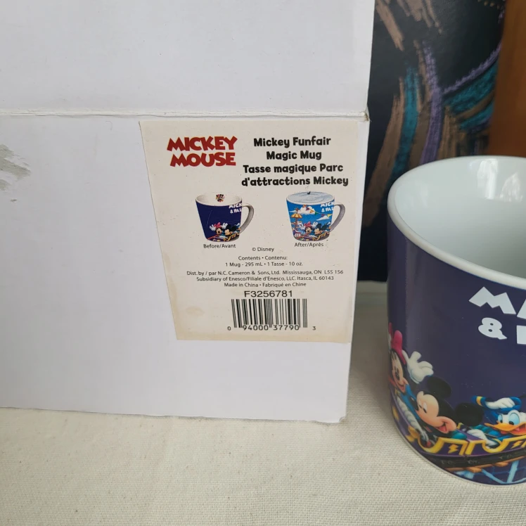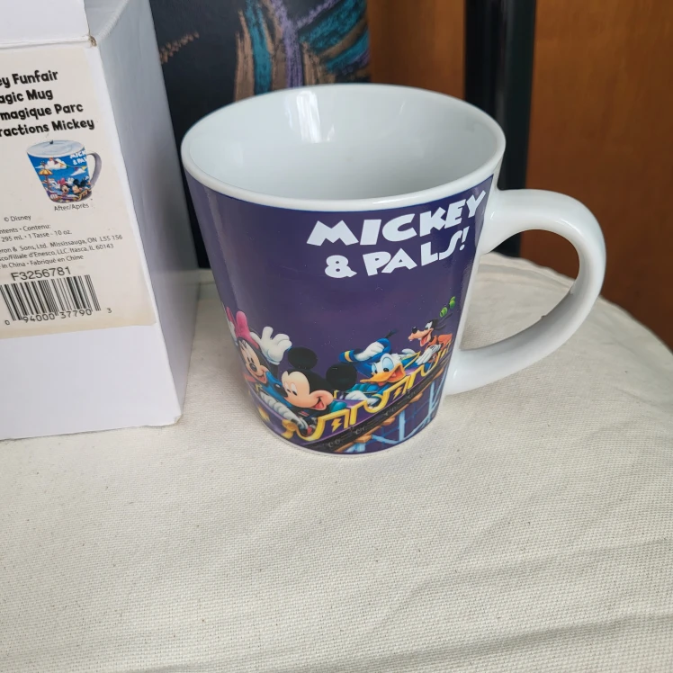 Selling a Mickey Mouse Funfair Magic Mug! It features Mickey and his pals on a fun ride. The mug is in great condition and comes with its original box. Perfect for any Disney fan!