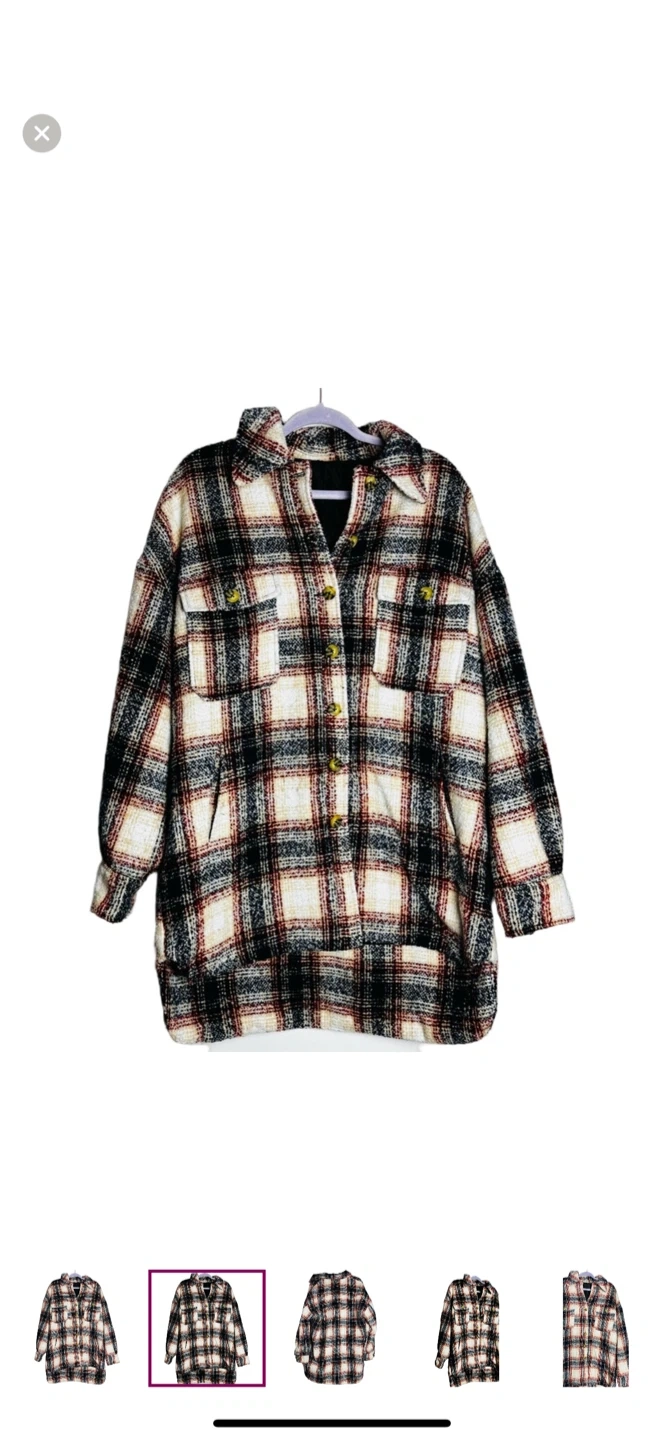 Plaid Navy Blue Red & Beige Button-Up Shacket