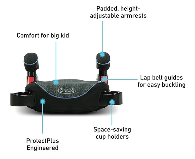Keep your little one safe and comfy on the road with this Graco TurboBooster backless booster seat, designed for children 4-10 years old, weighing between 40-100 lbs (18-45 kg). This seat features padded, height-adjustable armrests and dual cup holders for added convenience and comfort. This booster seat is used and in good condition, ready for its next adventure. Key Features: * Suitable for children aged 4-10 years * Weight capacity: 40-100 lbs (18-45 kg) * Padded, height-adjustable armrests * Dual cup holders