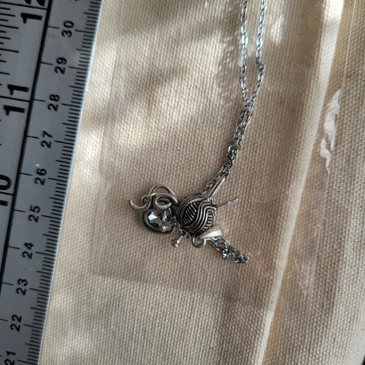Cute Mary Maxim knitting ball pendant necklace in great condition! The pendant features a ball of yarn with knitting needles. It's a unique and charming piece for any crafter or knitting enthusiast