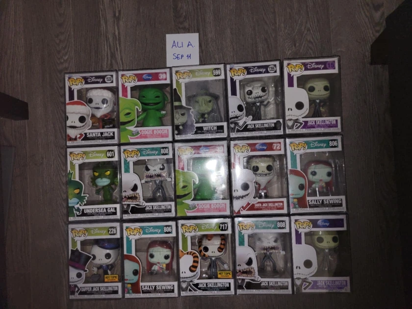 I'm selling a collection of Funko Pop! figures from Disney's The Nightmare Before Christmas. They are all in great condition and come in their original boxes. Perfect for any collector or fan of the movie!