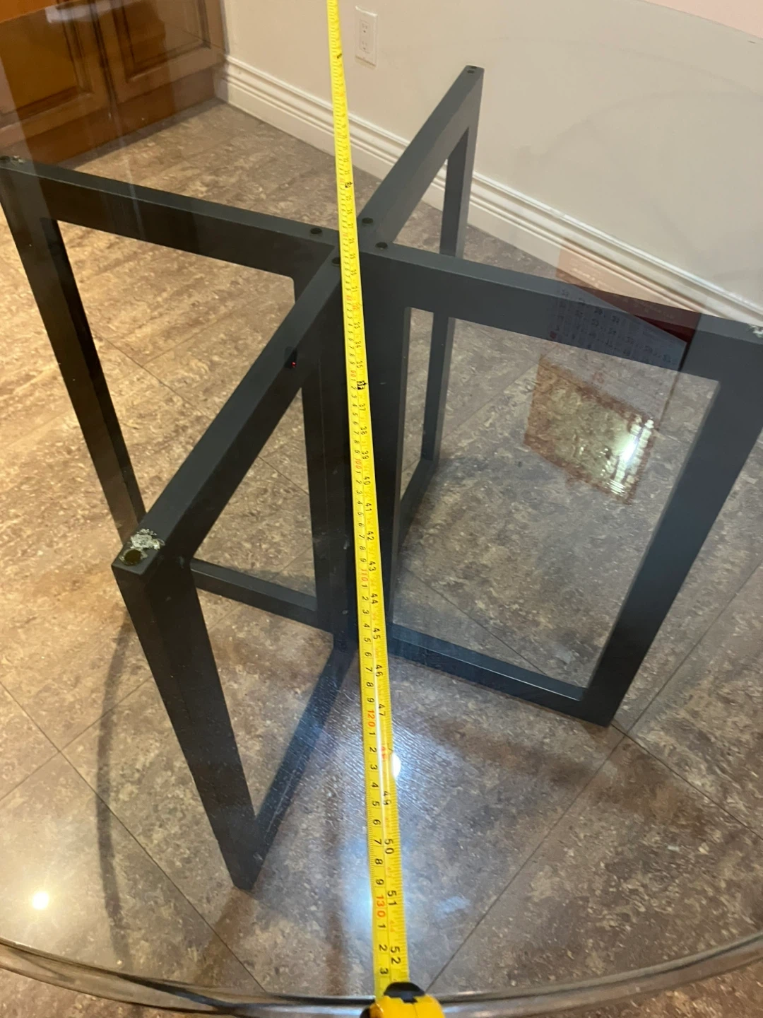 MOVING SALES ~ CASH ONLY - Door pick up near PNE - Selling a round dining table with a glass top and a dark metal base. It's in good condition and would be a great addition to any dining room or kitchen nook