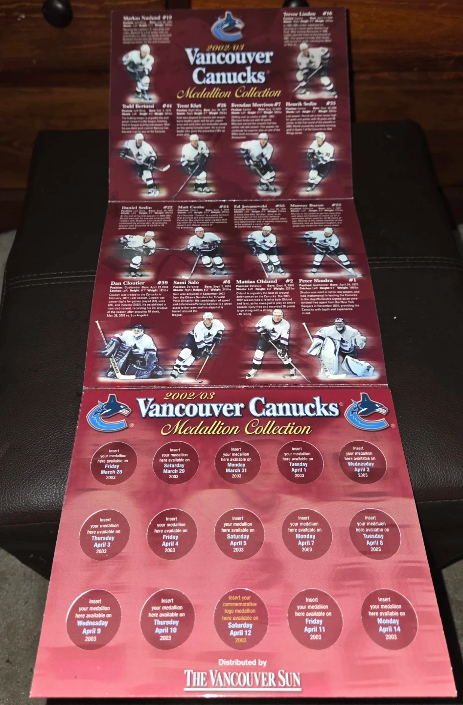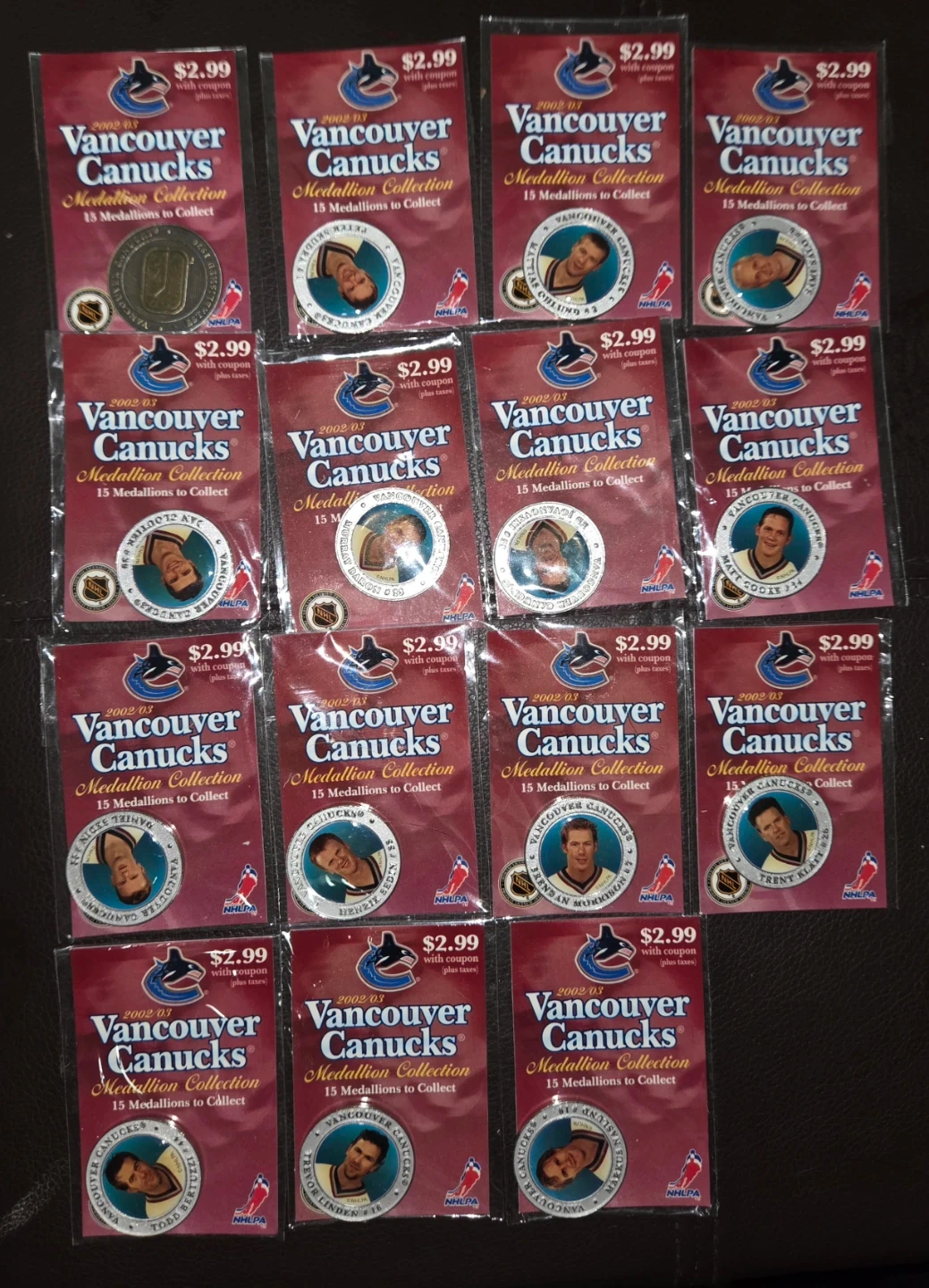 Selling a complete Vancouver Canucks 2002/03 Medallion Collection distributed by The Vancouver Sun! Each medallion features a different player from the 2002/03 team. A cool piece of Canucks history!
