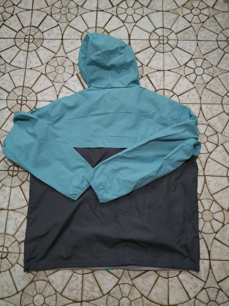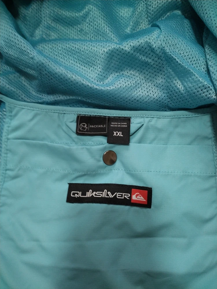 Selling a Quiksilver packable jacket in size XXL! It's a stylish and functional jacket perfect for outdoor activities. The jacket features a color block design with a teal upper and gray lower section. It's in great condition and ready for a new owner!