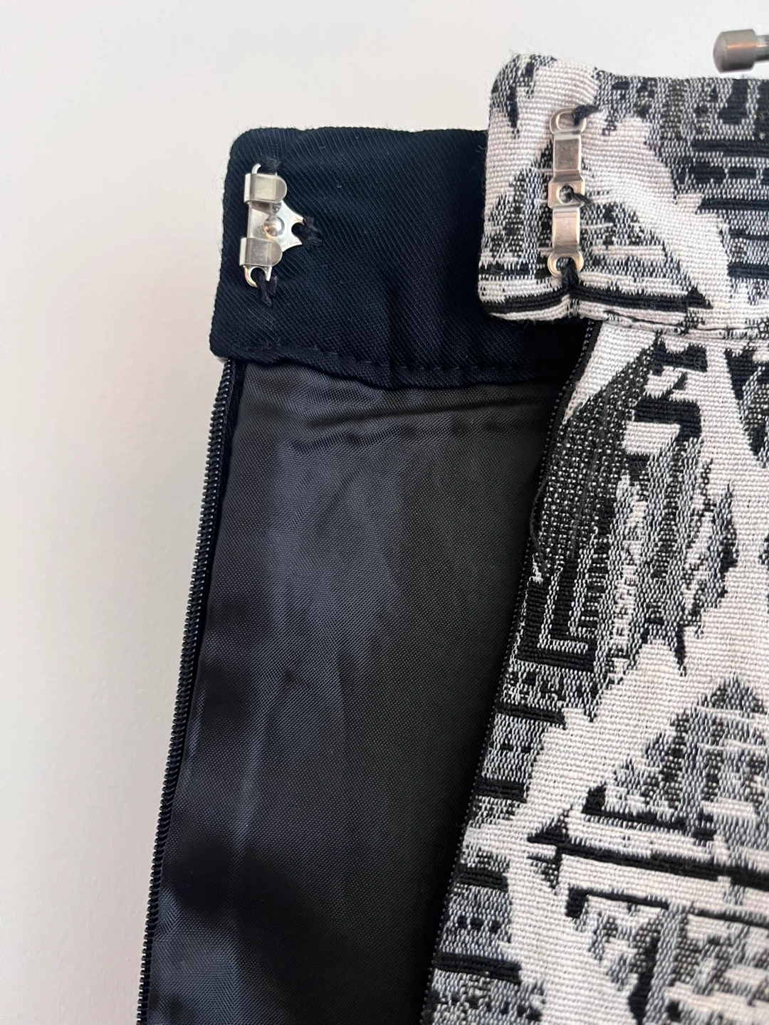 ✔️The hook-and-eye closure is intact and functional.