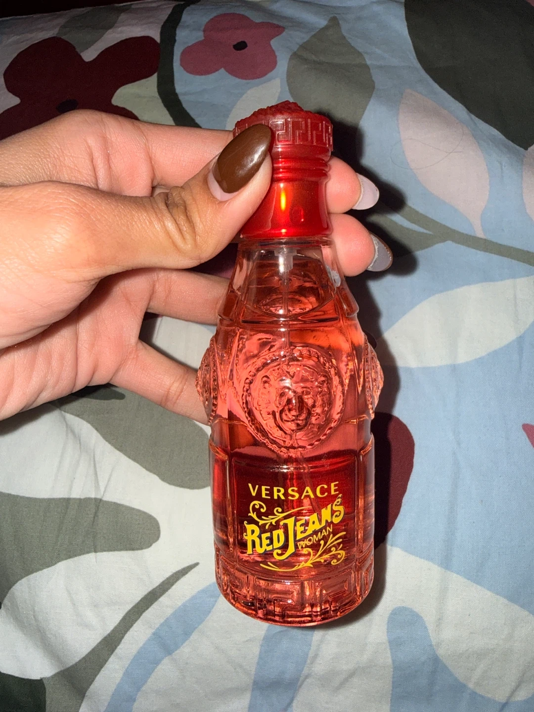 Selling a bottle of Versace Red Jeans Woman Eau de Toilette. It's a 75ml natural spray. This is a classic fragrance that's perfect for everyday wear!