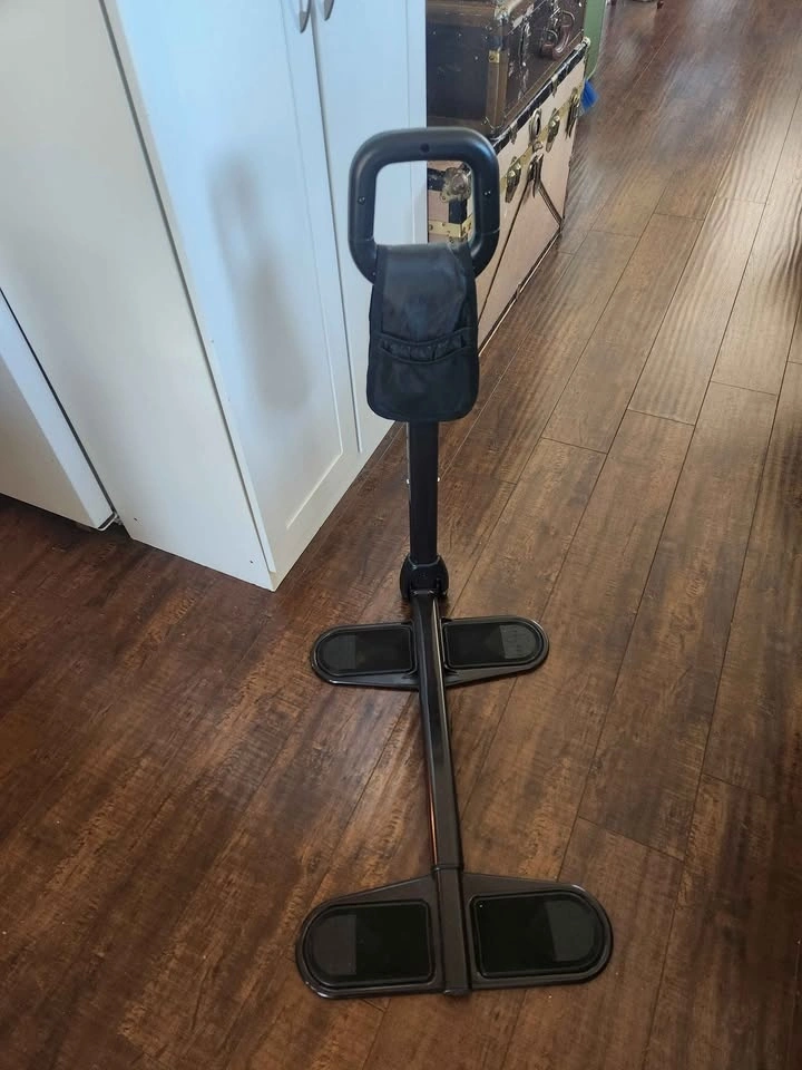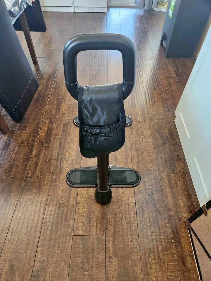 In excellent condition. Place legs under chair or sofa for stabilizing, use handle to support getting to standing position. Only used for a couple of days. Not needed anymore. It was $300 new.