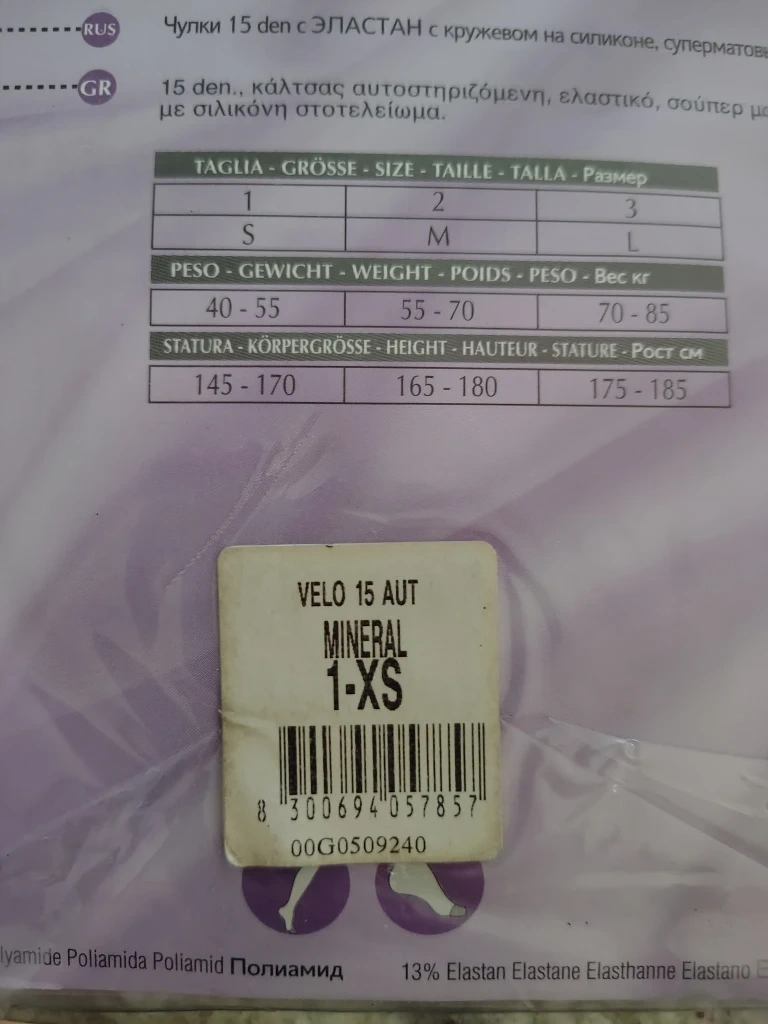 • Pompea Velo 15 Stay-Ups – Mineral colour, Size 1–XS, 15 den (purchased in Europe)