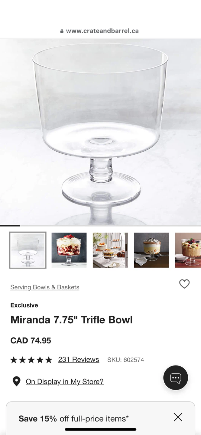 Selling a glass footed bowl, perfect for parties and gatherings! It would be great for serving English Trifle!