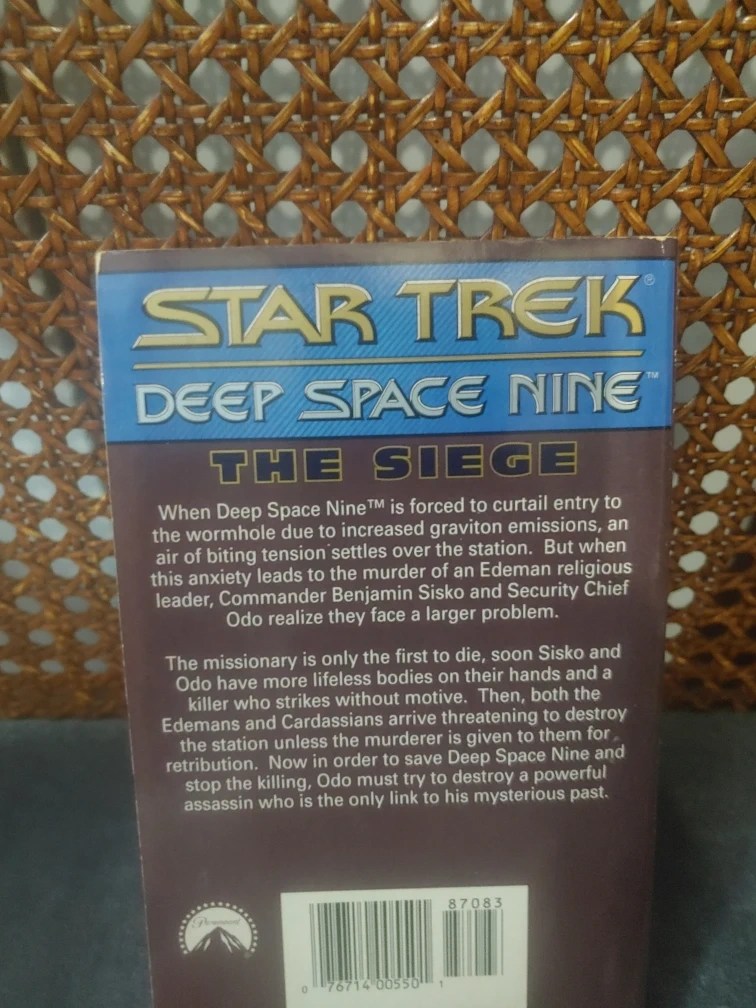 Selling the second book in the Star Trek: Deep Space Nine series, "The Siege" by Peter David! It's a paperback novel based on the hit TV series