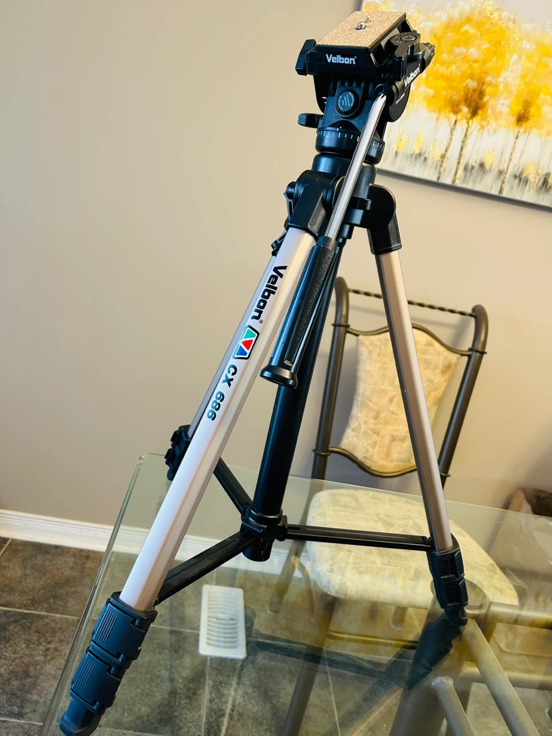 The Velbon CX686 is a midsized tripod for DSLRs and mirrorless cameras, with aluminum legs and plastic hardware: relatively lightweight and durable, though this is not an "expedition" tripod by any stretch. If you need a decent, well-priced video tripod and you're not planning to bang it around a whole lot, this could be the ticket. The head is a Vel-Flo 9 Mini-Pro fluid panhead, suitable for stills or video.