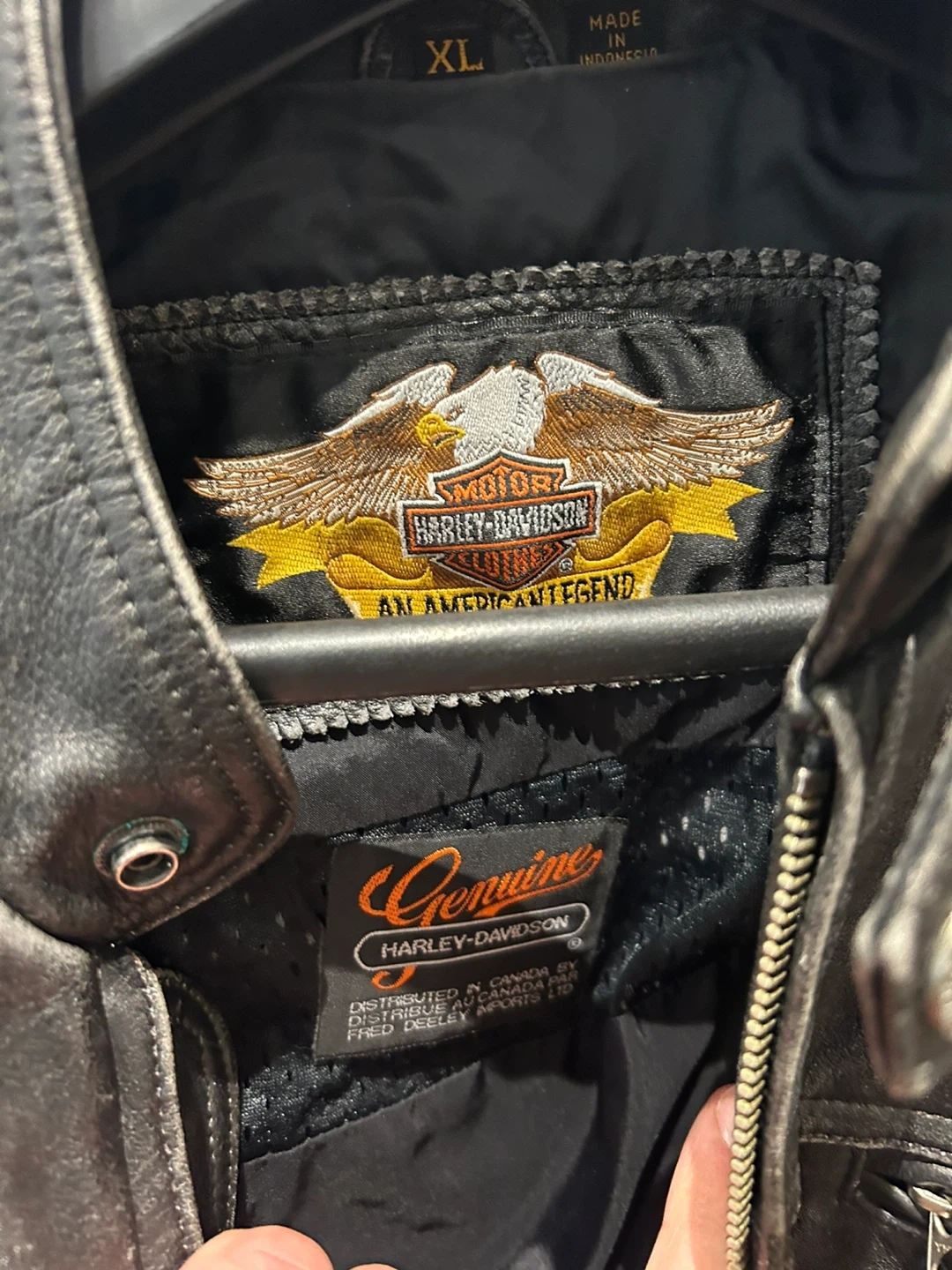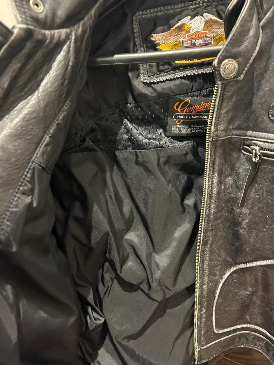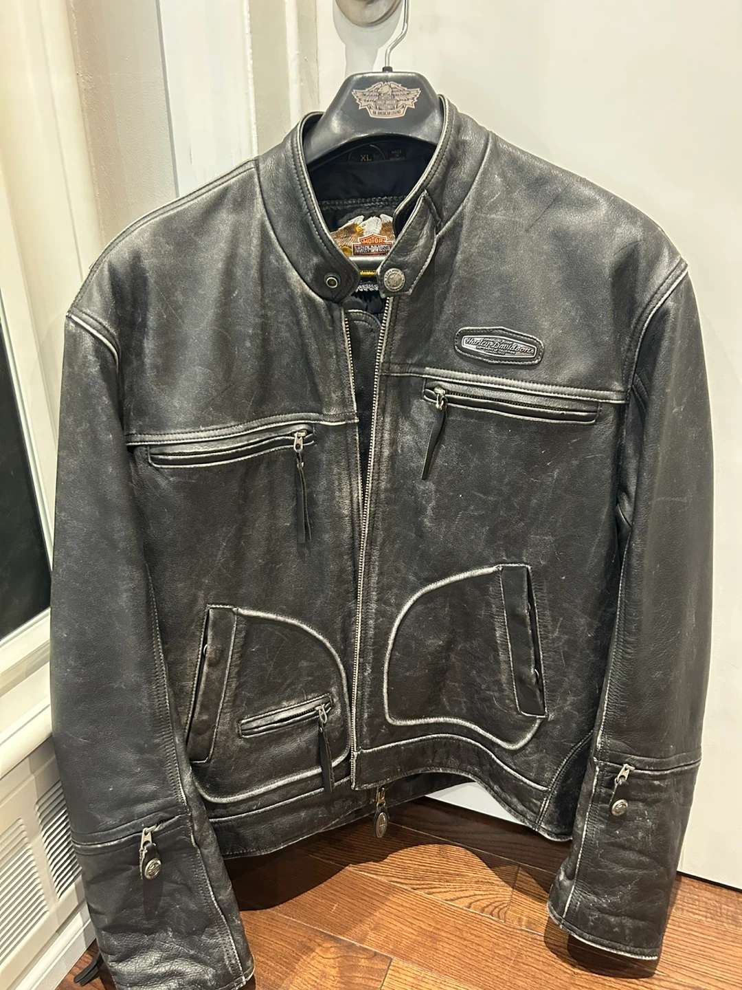 Vintage Harley Davidson Distressed Black Leather Jacket XL
