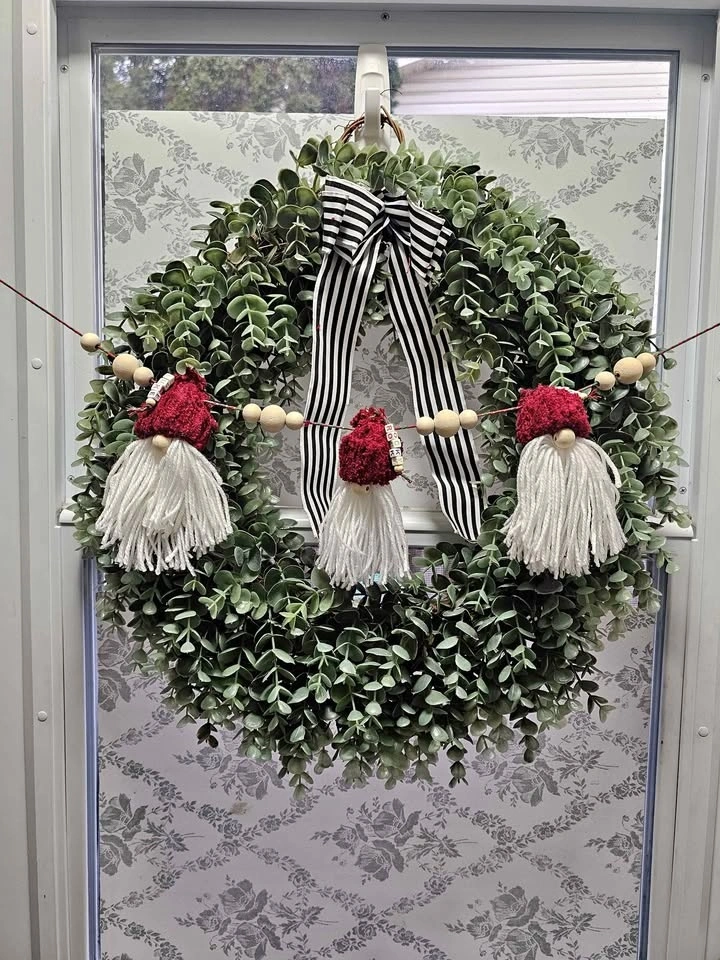 Personalized Santa garlands. Set of 3 is $25 to add an extra Santa is $5. Great personalize gift for Christmas. Names can be along the garland or hanging on the hat.