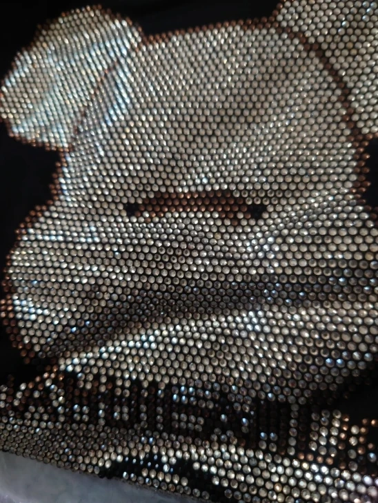 Selling a black t-shirt with a unique bear design on the front. The shirt is size Xlarge. The design appears to be made of small, shiny beads or rhinestones. It's in great condition and ready for a new home!