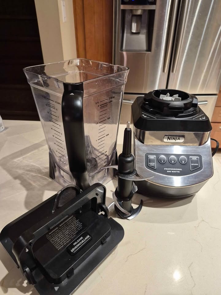 Selling a Ninja Professional blender with 900 watts of power! It has settings for power, speeds 1-3, and pulse. Perfect for making smoothies and other blended drinks. It's in good working condition and ready for a new home
