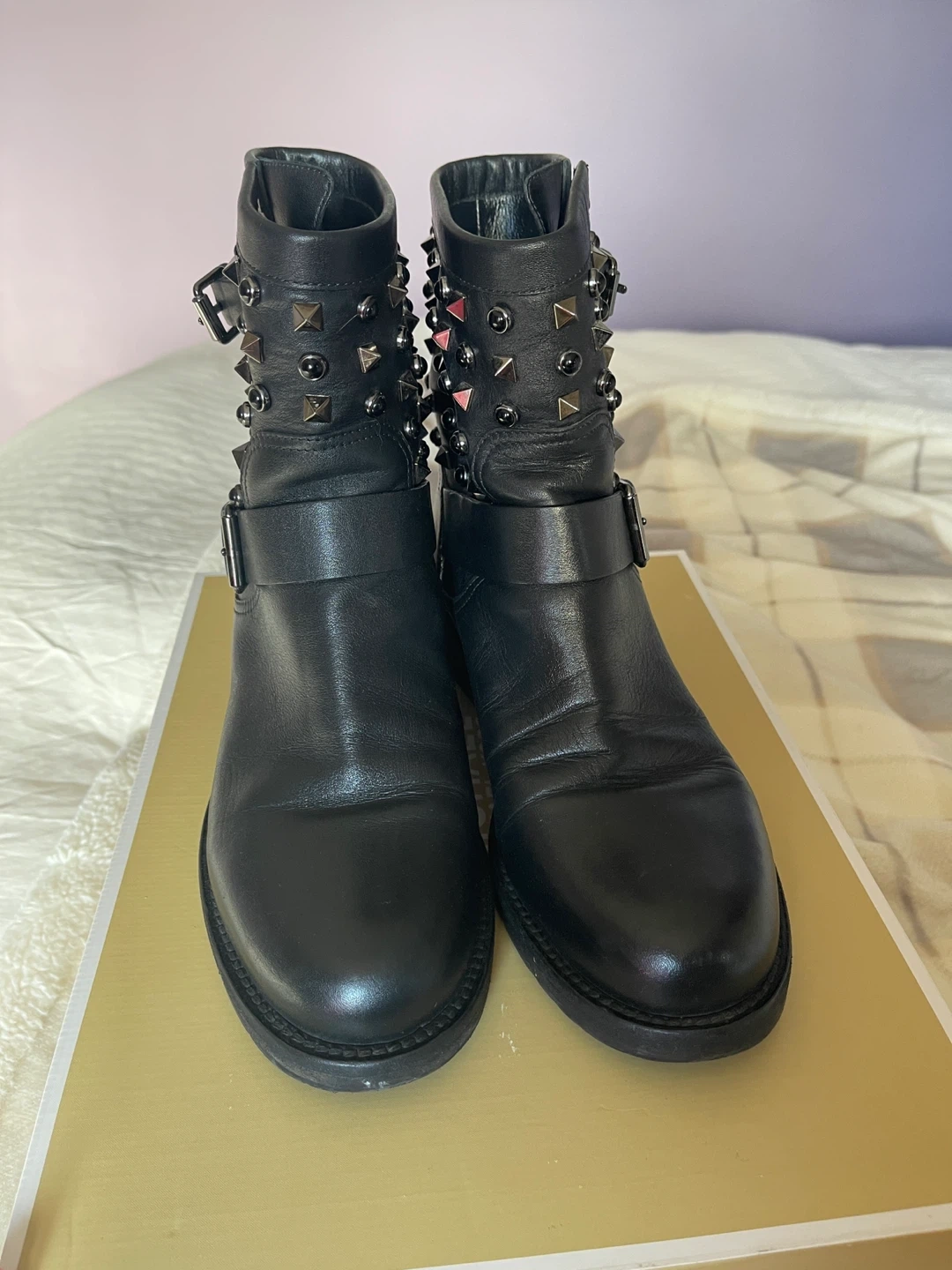 Authentic Valentino Leather Studded Boots - Size 38