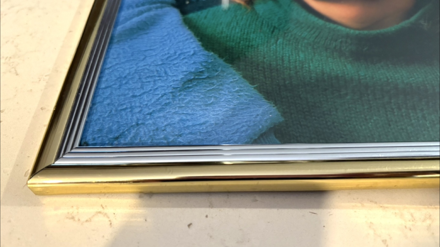 Selling a gold & silver coloured picture frame with a stand.