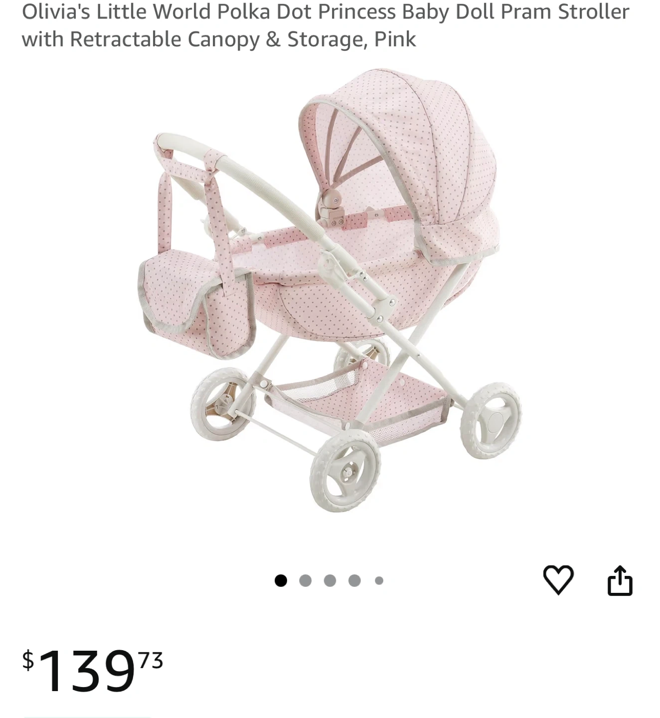 Olivia's Little World Polka Dot Princess Baby Doll Pram
