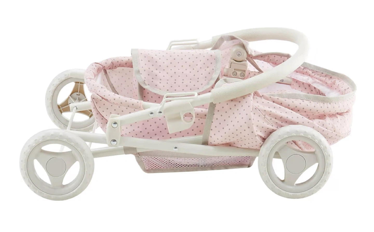 This adorable Olivia's Little World Polka Dot Princess Baby Doll Pram Stroller is perfect for your little one's dolls! It comes with a retractable canopy and a storage basket for all their doll accessories. The pram also includes a detachable diaper bag for added convenience.