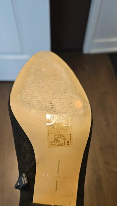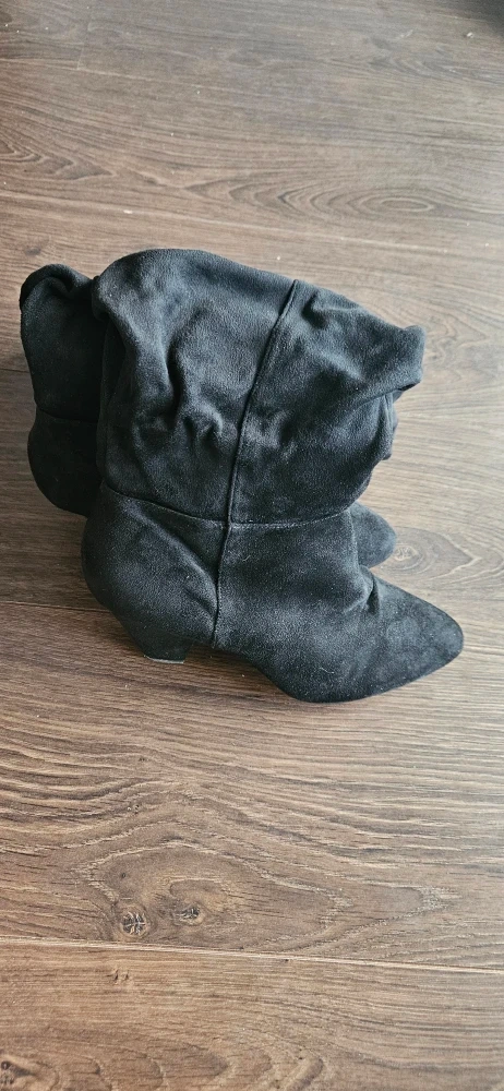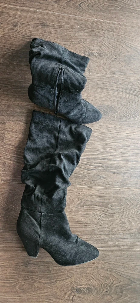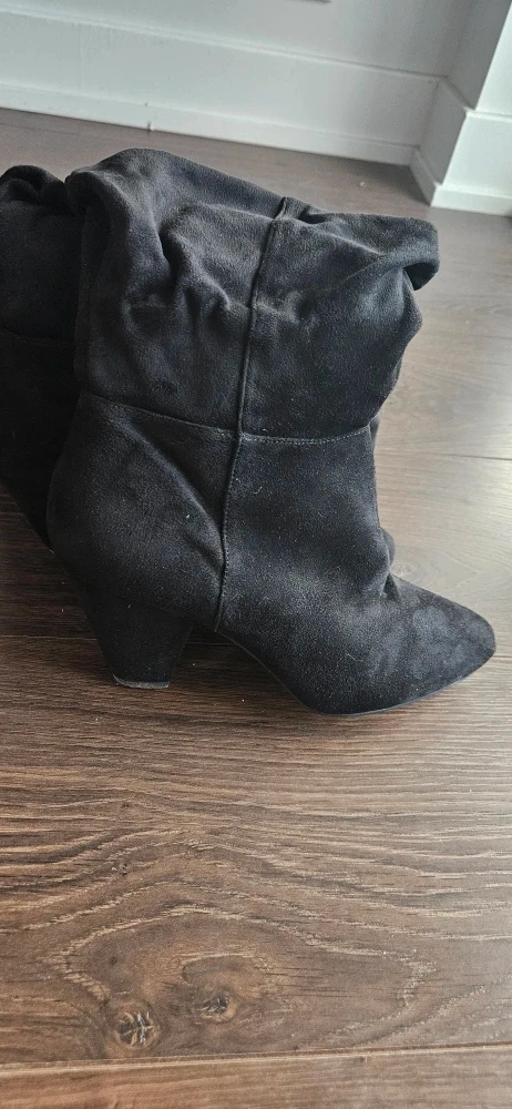 Selling a pair of black slouch boots in Size 8 ! They are in great condition, with just a tiny scuff at toe area (unnoticeable, see picture). Perfect for adding a touch of style to any outfit.