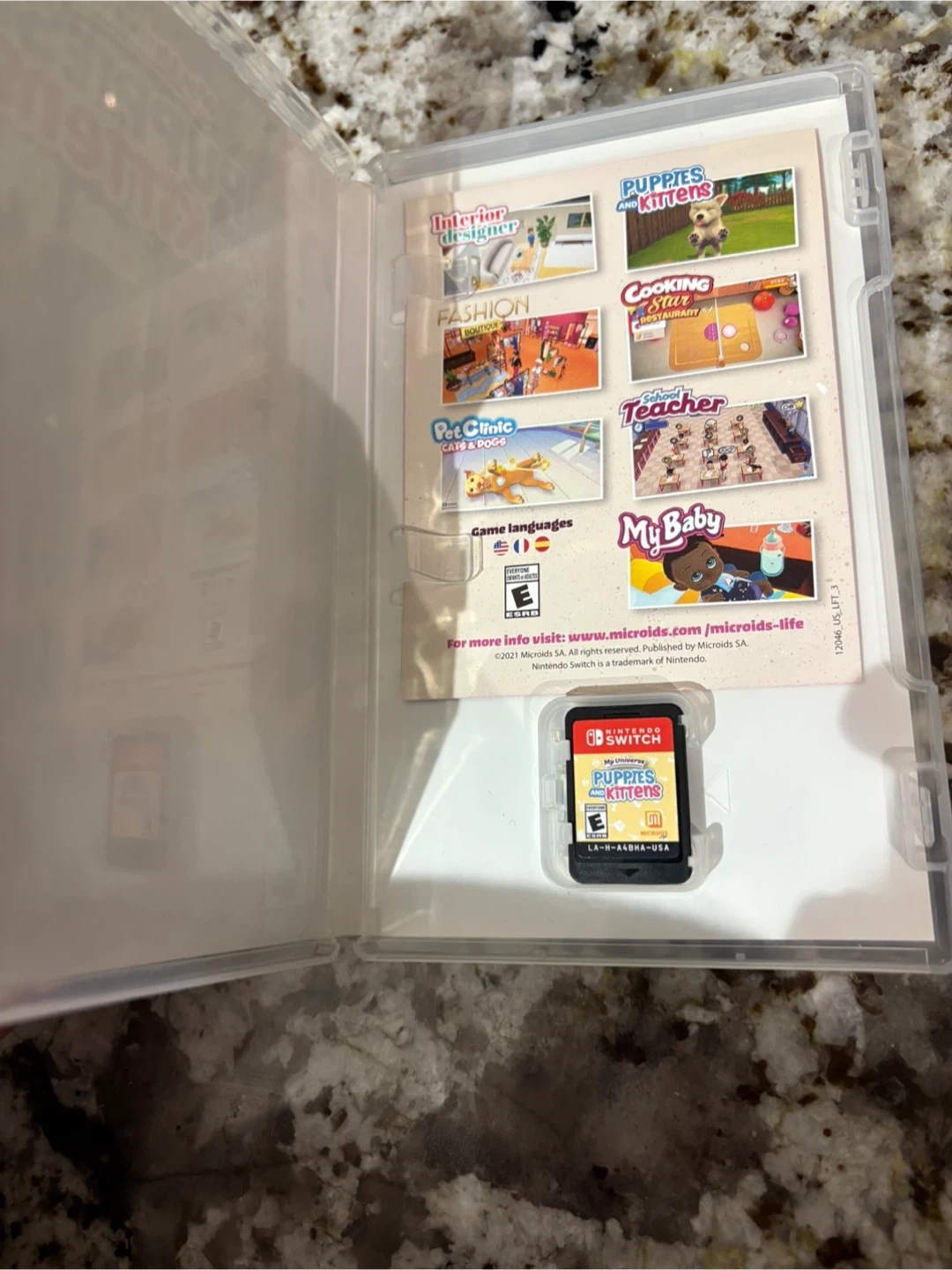 Selling the Nintendo Switch game My Universe: Puppies and Kittens! It's in great shape and ready for a new home. Enjoy playing as a vet, teacher, or even a fashion designer!