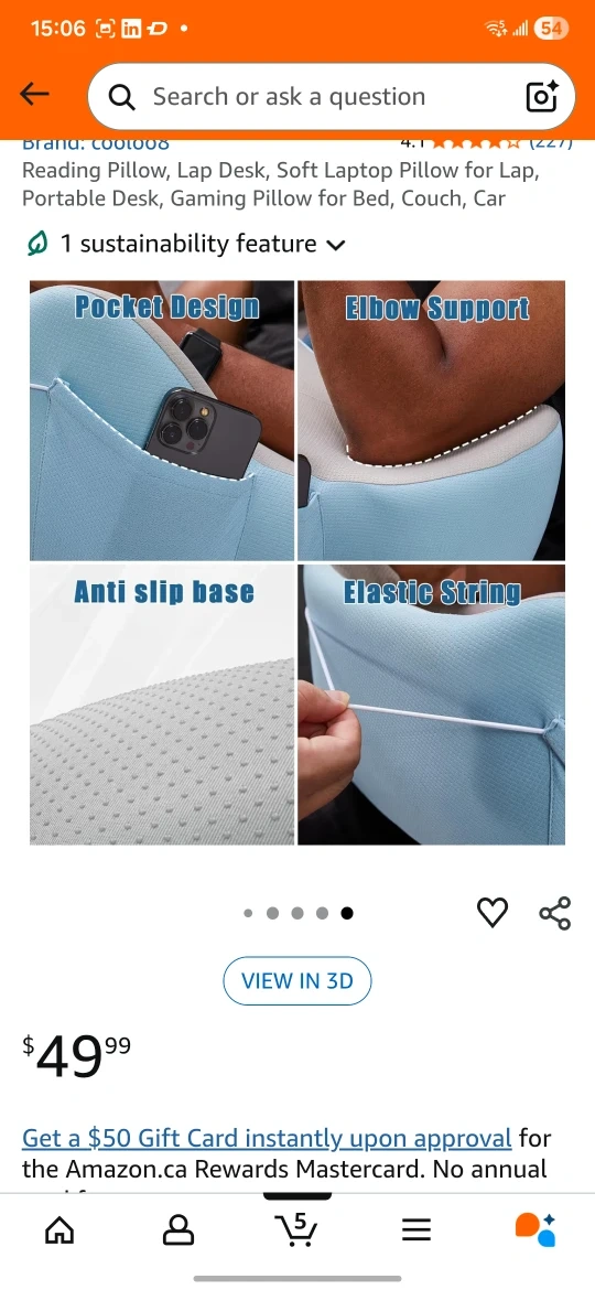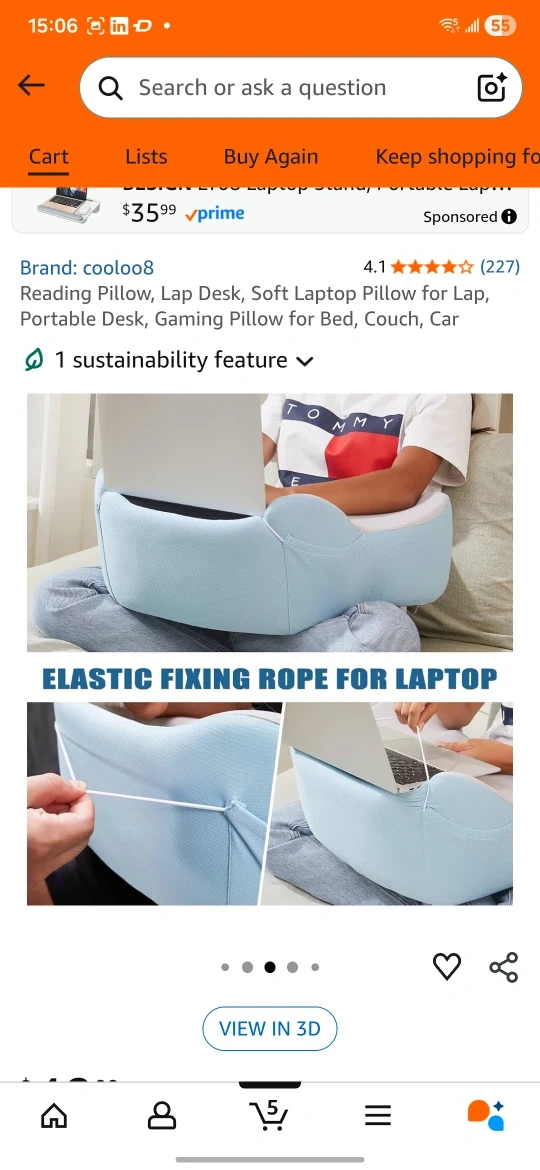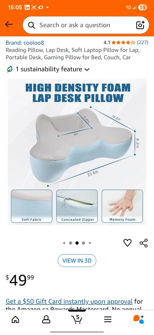 This is a high-density foam lap desk pillow by Cooloo8. It's perfect for reading, using your laptop, or gaming in bed, on the couch, or in the car. The pillow features soft fabric, a concealed zipper, and memory foam. Originally bought for $49.99