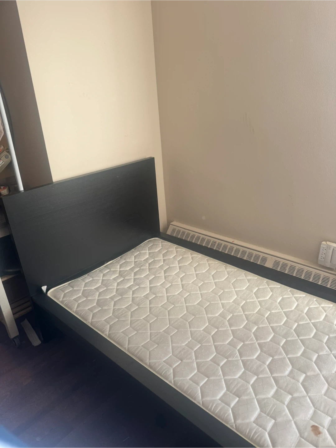 Buy & SellTwin Bed FrameTwin Bed Frame$135Selling a twin bed frame. The frame is a dark colour and the mattress is white. It's perfect for a small space or a kid's room!ConditionGoodWHERE TO MEETCheck LocationView MapSELLERTonyMarkland Wood100 reviews1 chats·1 favorites·80 viewsSEND CHAT TO SELLERHi Tony! I’m interested in your listing.Hi Tony! I’m interested in your listing.Get the Karrot app to chatSign In to chat